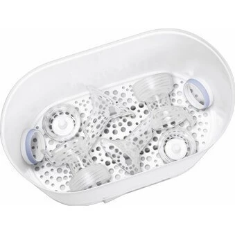 Provedení sterilizátoru umožňuje použít jej pro láhve s širokým i úzkým hrdlem a také pro různé odsávačky a příslušenství. Díky tomu si můžete vybrat láhve a příslušenství, které nejlépe vyhovují vám i vašemu dítěti.
