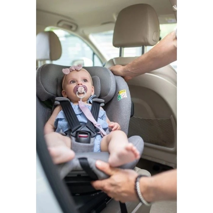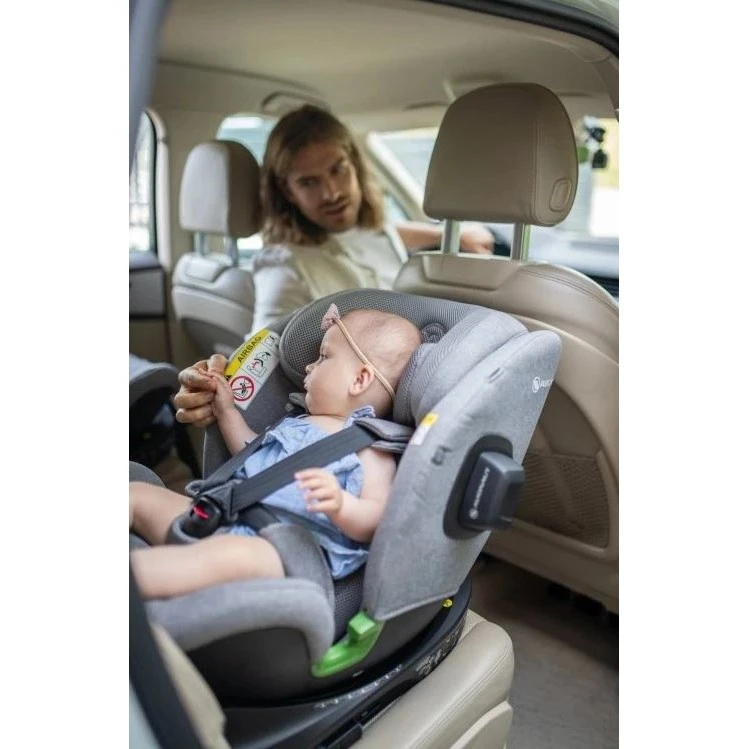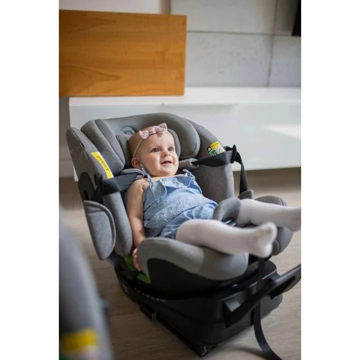 Otočná základna usnadní usazování dítěte do autosedačky i jeho vyndavání. Autosedačku je možné otáčet pohodlně jednou rukou. Antirotační rám poskytuje větší prostor pro nohy, což ocení větší děti v protisměru. Do vozidla se instaluje pomocí isofixu.