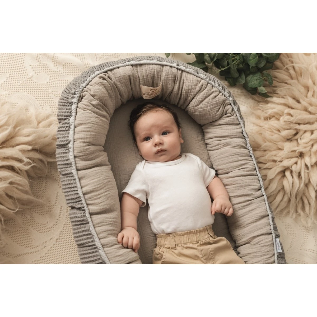 Hnízdečko poskytuje nejmenším bezpečný prostor i pocit bezpečí. Dětské hnízdečko Baby Matex z bavlny a mušelínu je vyrobeno z velmi příjemného a měkkého materiálu. Výplň je z jemného měkkého silikonového vlákna.Hnízdečko je šetrné i k citlivé pokožce - plní certifikát Oeko-Tex Standard 100 Class 1.
