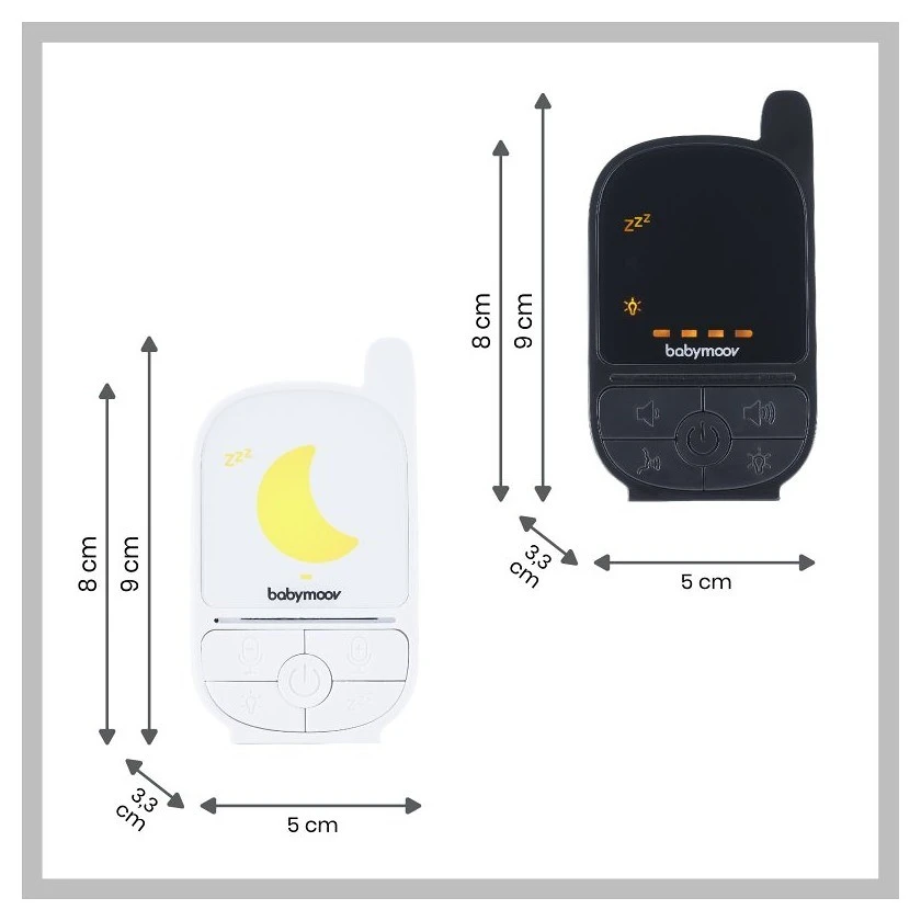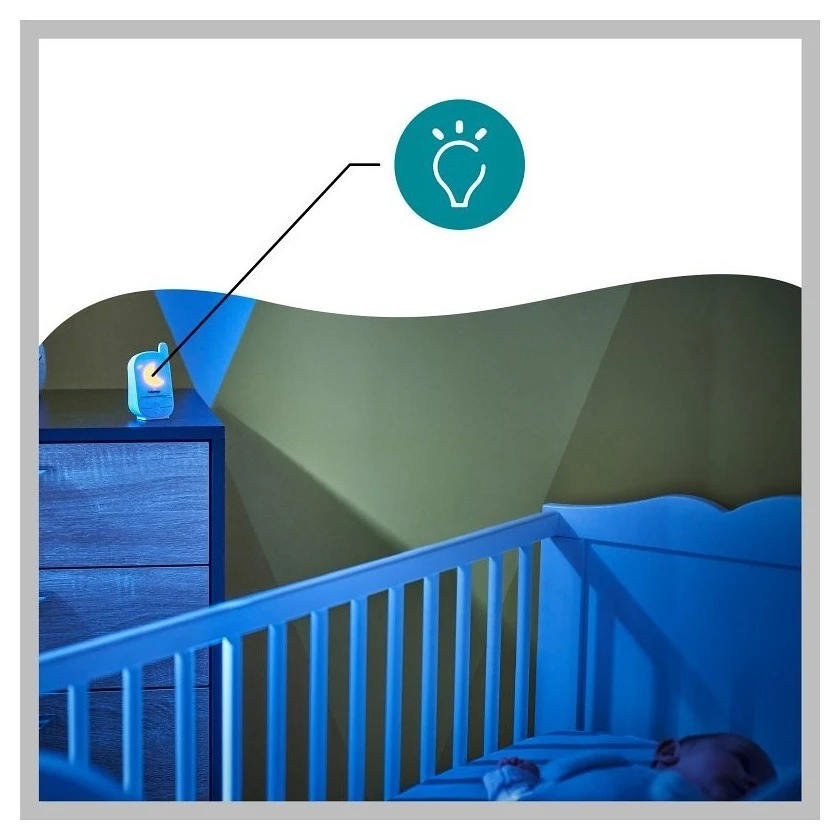 Funkce Walkie-Talkie umožňuje obousměrný přenos zvuku, takže můžete s dítětem komunikovat a uklidnit ho svým hlasem na dálku. Dětská jednotka je vybavena tlumeným nočním světlem ve tvaru měsíce s nastavitelnou intenzitou, které vytváří příjemnou atmosféru pro klidný spánek.