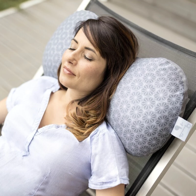 Polštář má ergonomický tvar a je plněný mikrokuličkami. Potah polštáře můžete jednoduše sundat a vyprat. Můžete také zakoupit náhradní potah v barvě Navy.