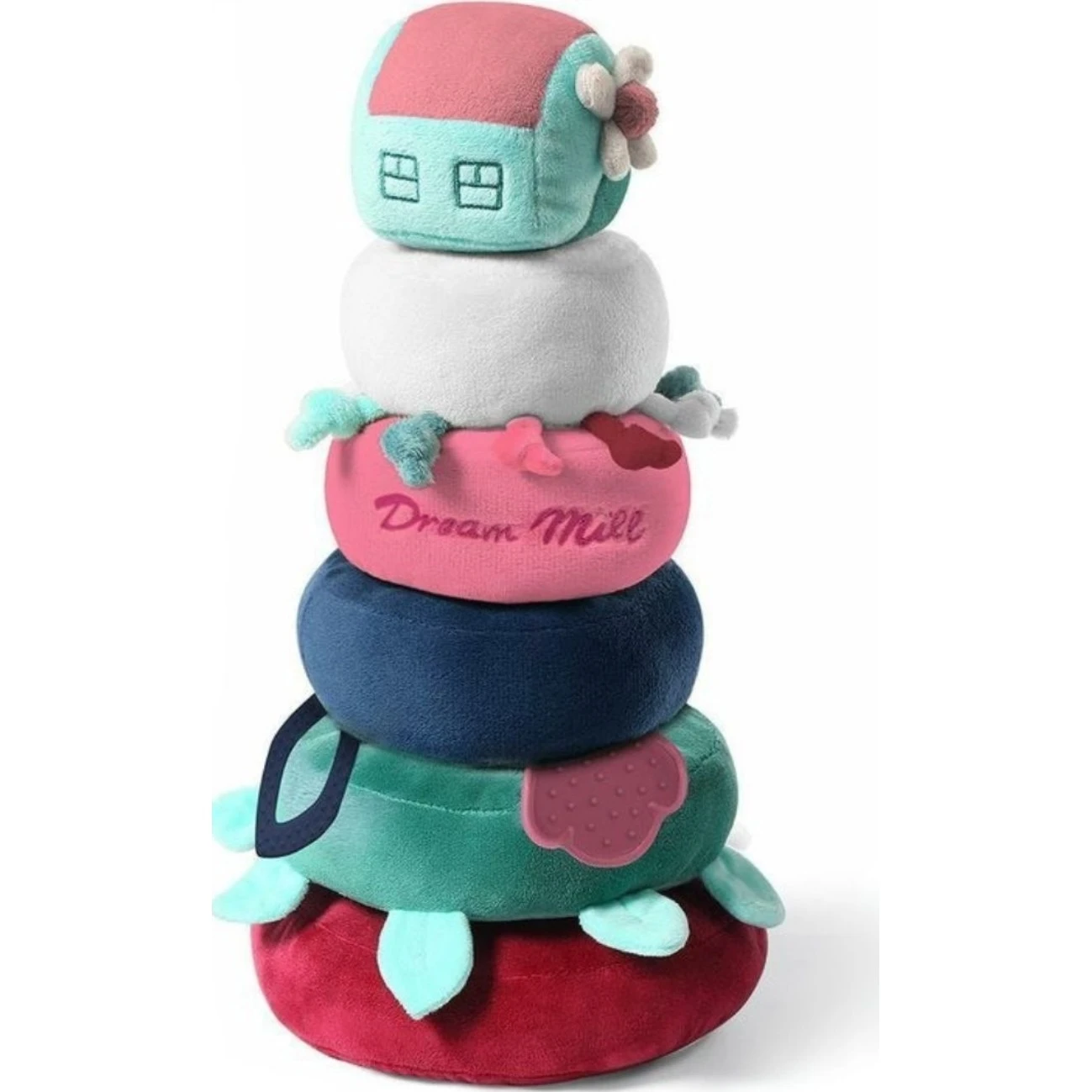 Babyono mlýn na sny je orzmanitá hračka, se kterou děti mohou objevovat svět barev a tvarů. Jednotlivé prvky mohou stavět podle velikosti do ucelené věže.Hračka podněcuje dětskou zvědavost, kreativitu a rozvíjí jemnou motoriku. Hračka je z materiálu, který je velmi příjemný na dotek. Dítě intuitivně podporuje úchop a učí se prostorovému vnímání.