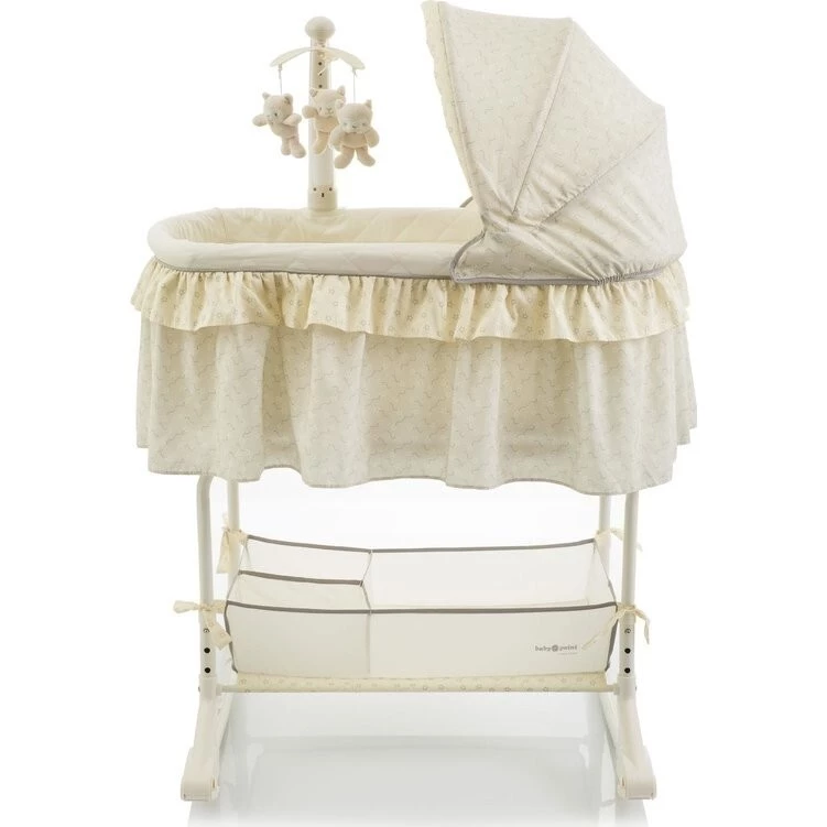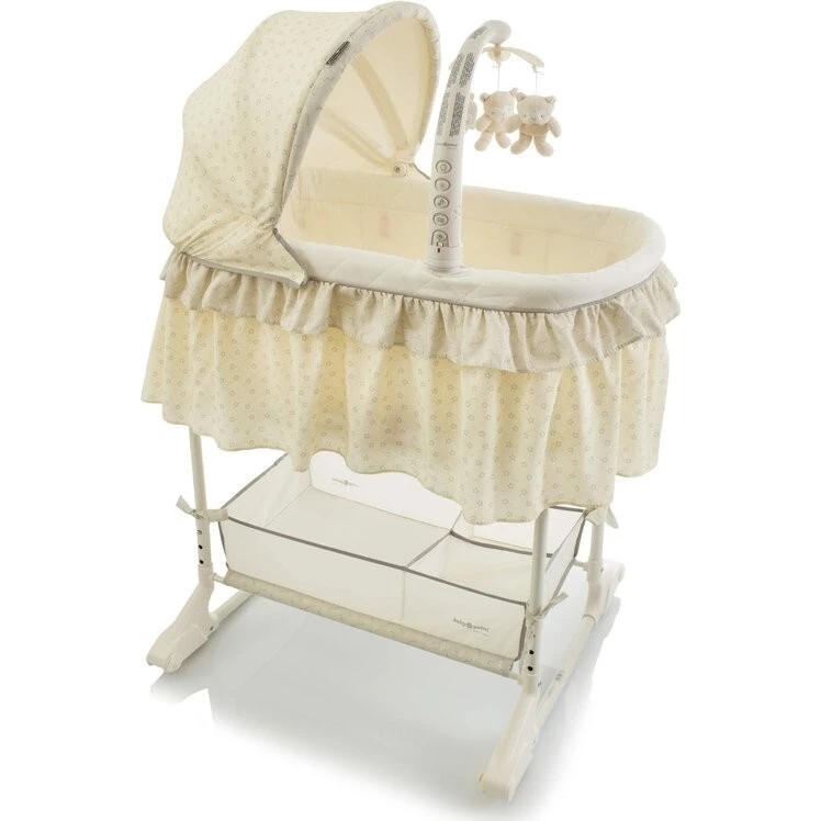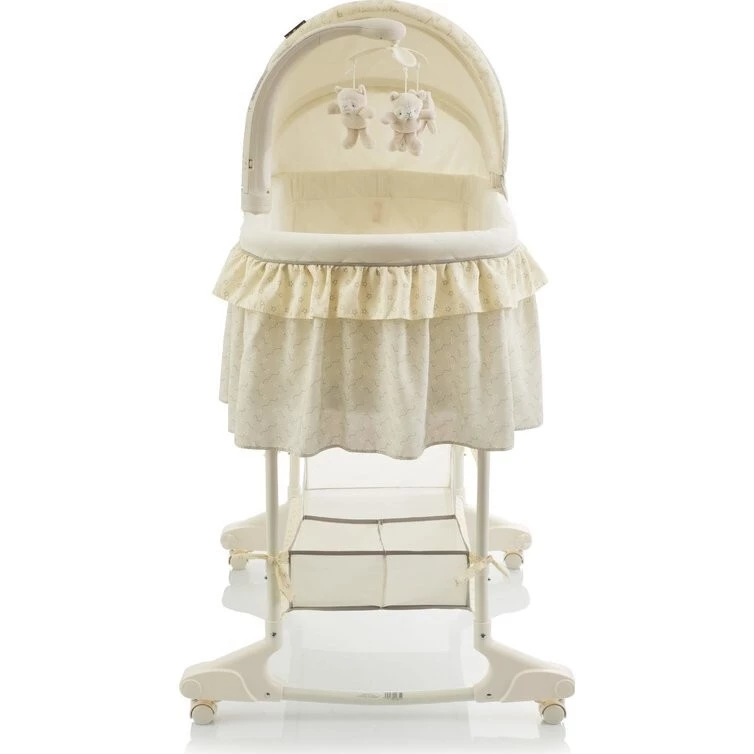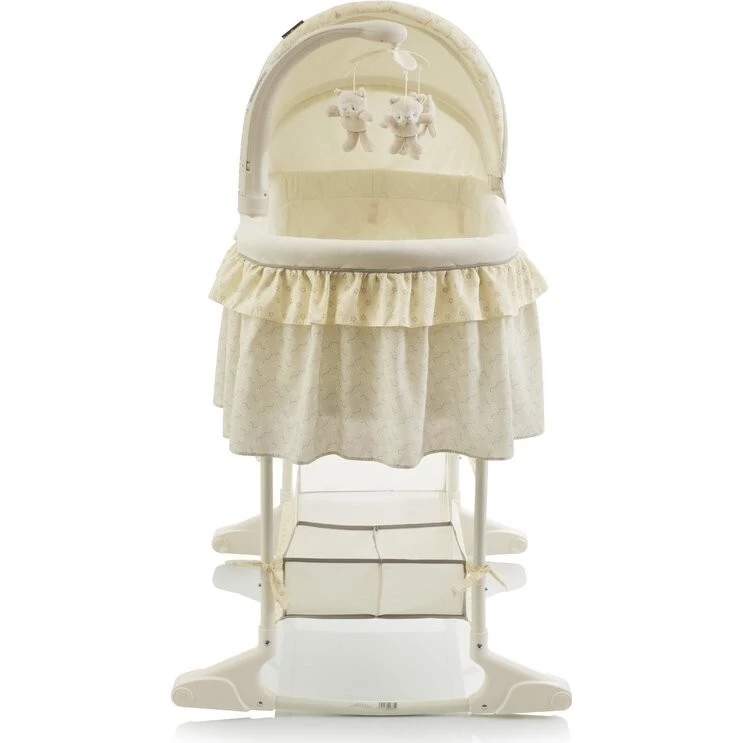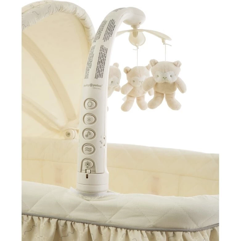 Kolébka obsahuje krásný hrací kolotoč, který má ovládání umístěno na svém rameni. U melodií je možné vybrat intenzitu hlasitosti. Kromě kolotoče je také na postýlce noční světýlko a postýlka umí vibrovat.