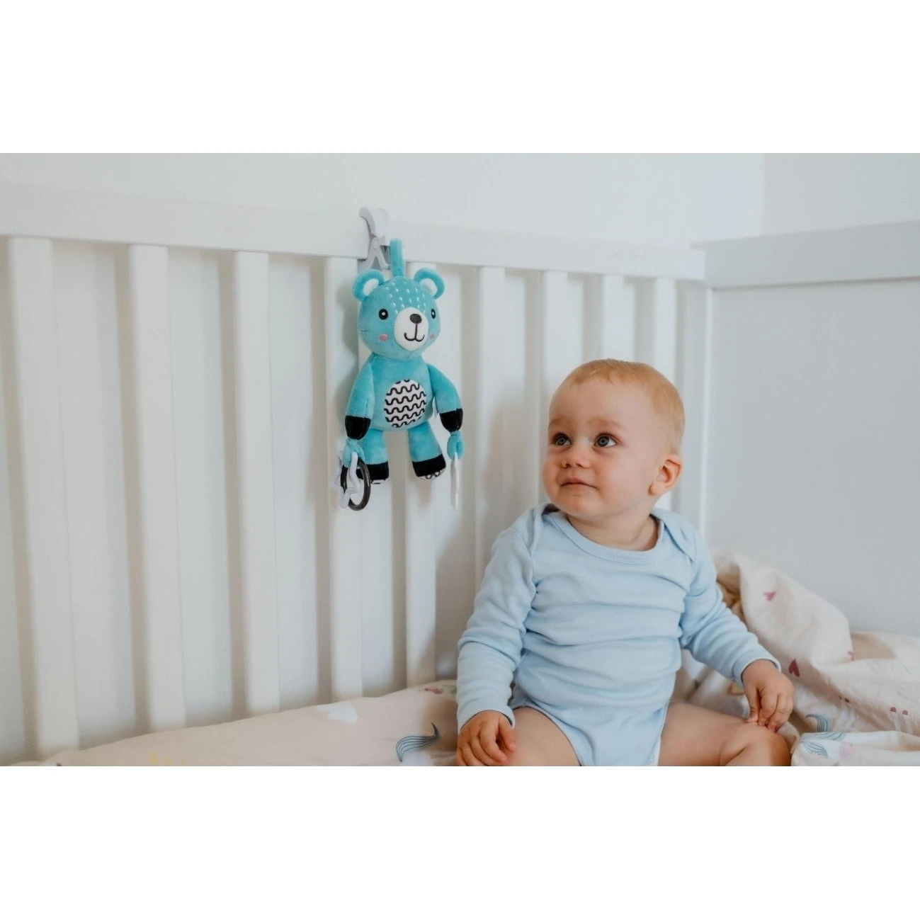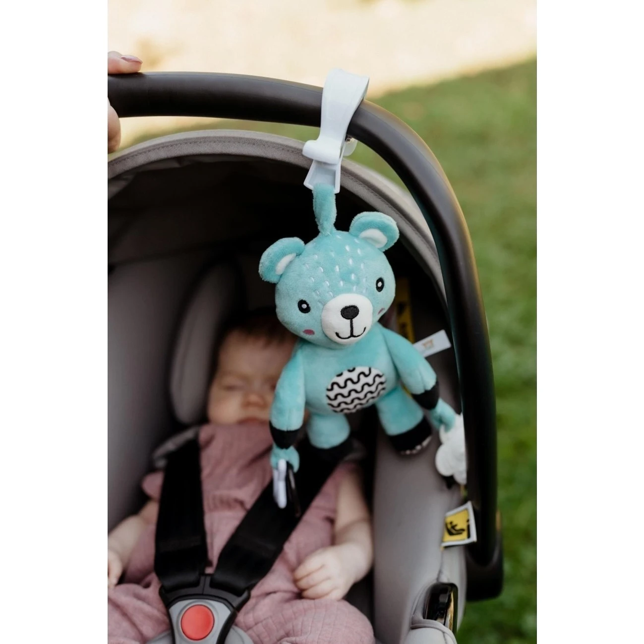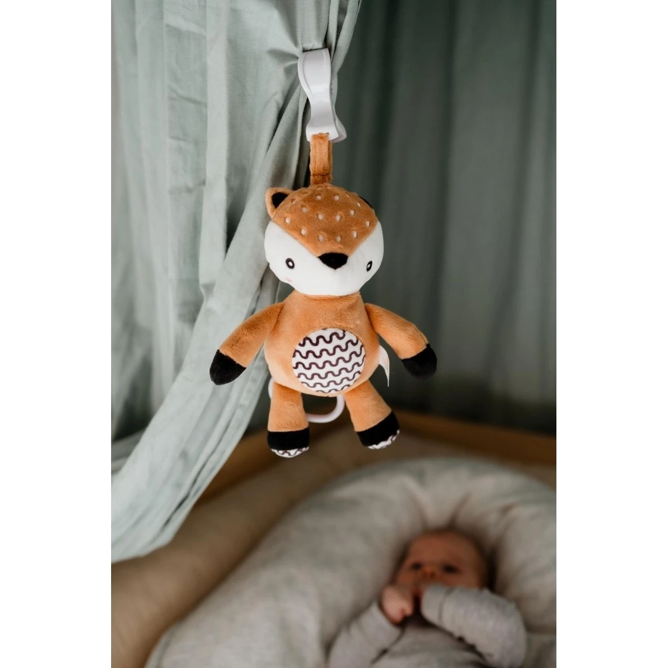 Roztomilá plyšová zvířátka s chrastítkem jsou vhodná již od narození. Díky prakcitkému klipu jej můžete zavěsit kamkoliv potřebujete.V tělíčku je zabudované chrastítko, které podporuje sluchový rozvoj a také přitahuje pozornost. Na koncích jsou bezpečné plastové tvary, které podporují jemnou motoriku.