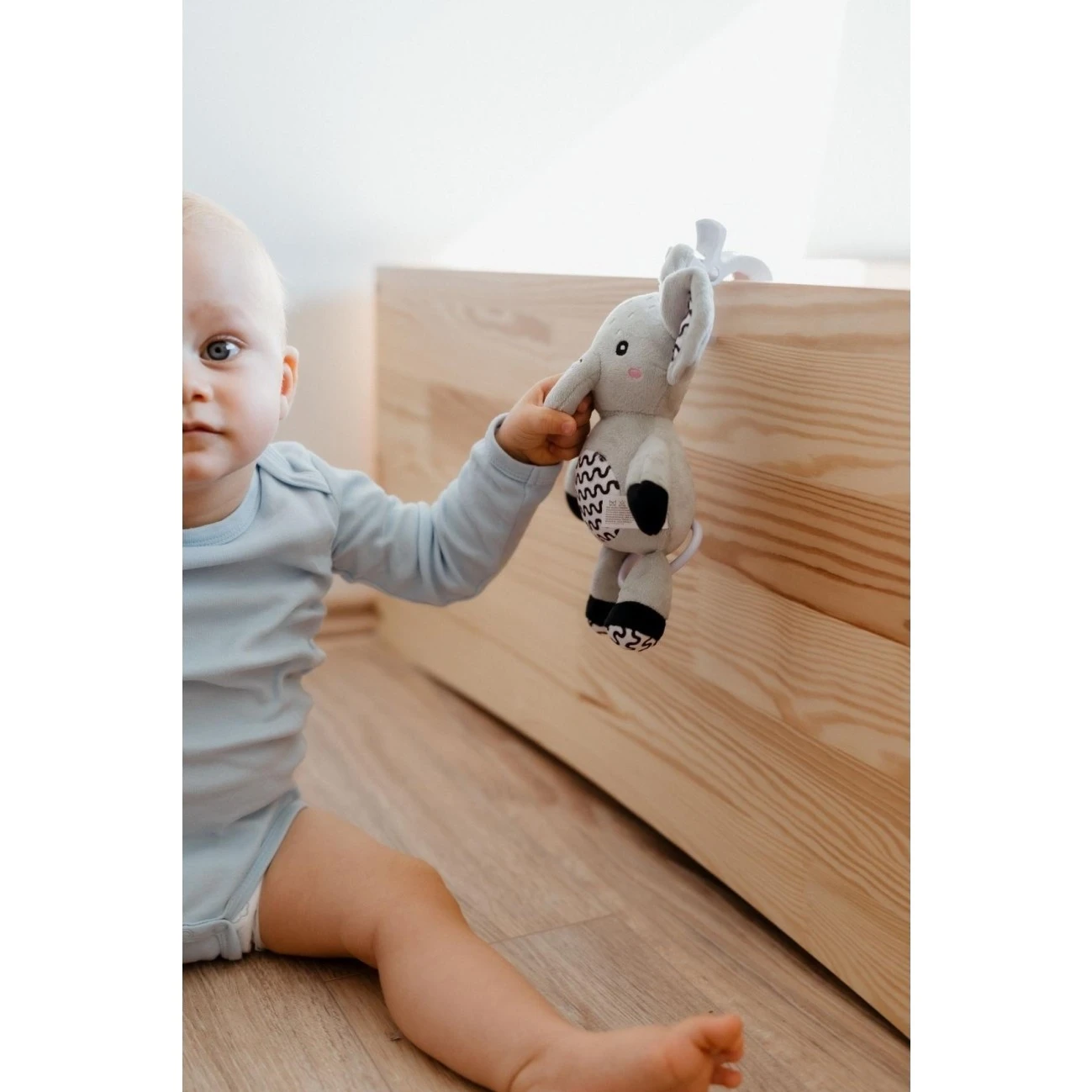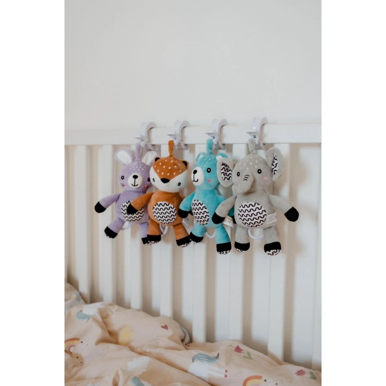Roztomilé plyšové hračky s natahovacím hracím strojkem jsou vhodné pro miminka již od narození. Po zatáhnutí začne zvířátko přehrávat líbeznou melodii, která napomáhá k uklidnění dítka.Díky závěsnému klipu hračku připevníte kamkoliv budete potřebovat. Hebký a měkký plyš si děti rychle oblíbí pro mazlení. Kontrastní vzory na bříšku navíc podporují vizuální vnímání miminek. Hračka je certifikována v ČR, a tedy plně bezpečná pro novorozence.