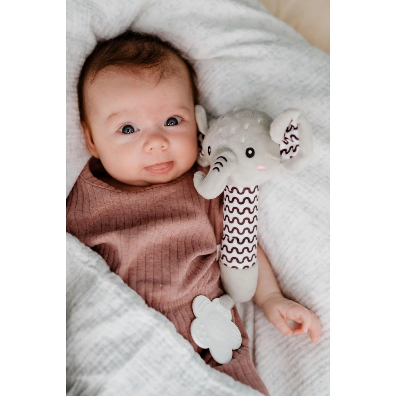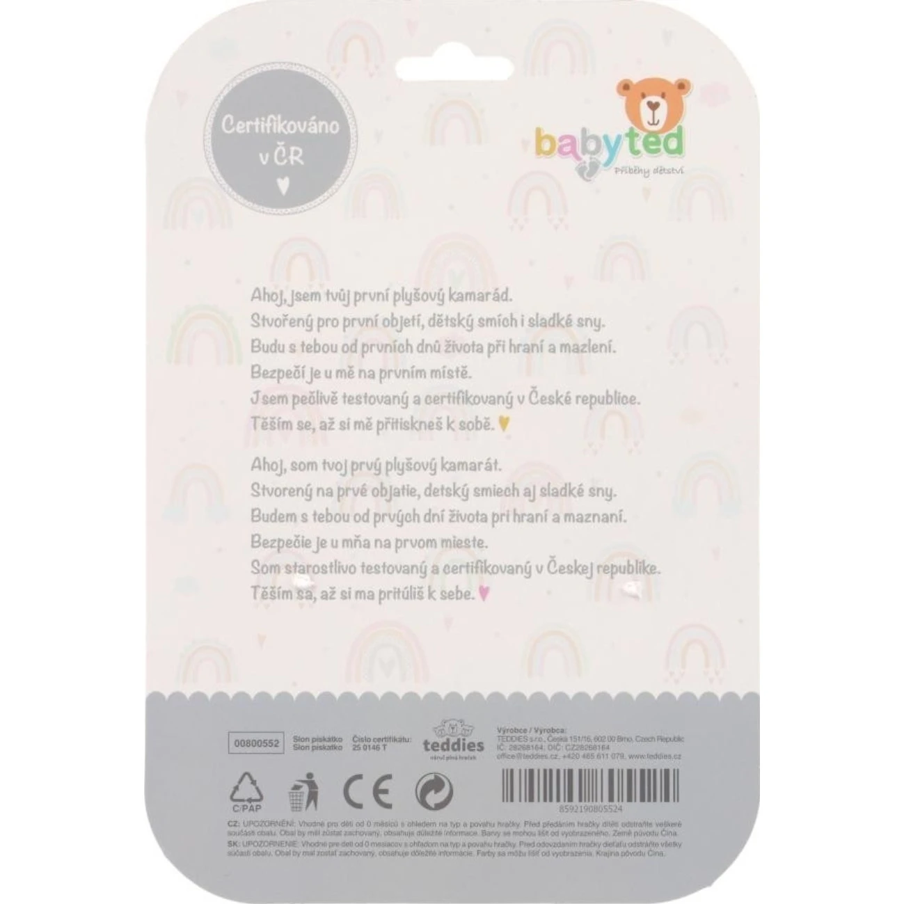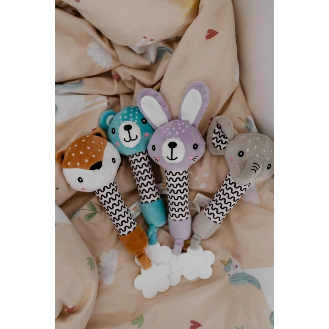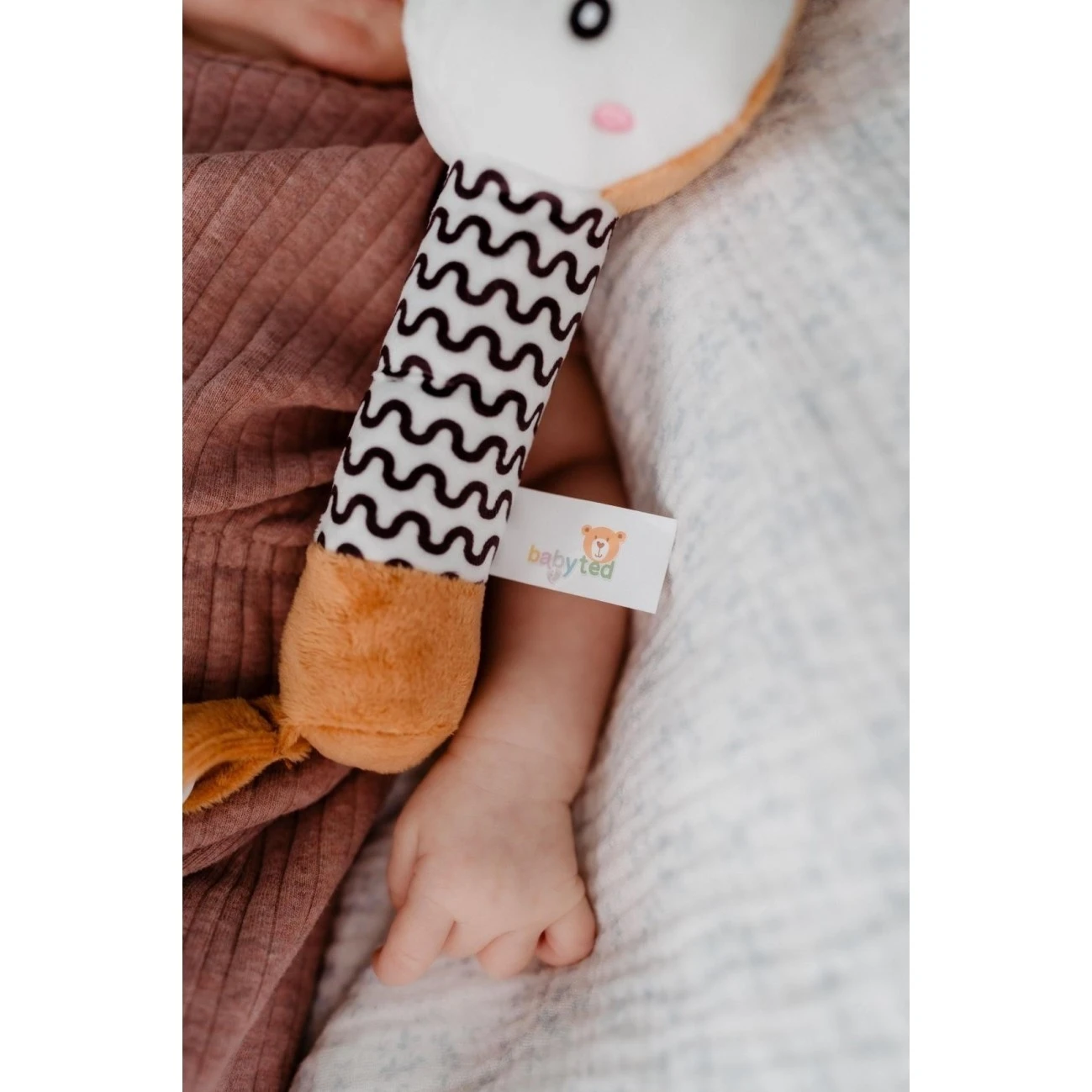 Roztomilá plyšová zvířátka s pískátkem Babyted jsou ideální pro nejmenší. Díky úzkému a dlouhému tvaru se s touto hračkou skvěle naučí první úchopy.Hračka je vhodná již od narození. Na konci je také měkké plastové kousátko, které pomáhá s úlevou při bolesti zoubků. Kontrastní vzory na tělíčku podporují vizuální vnímání a rozvoj zraku.