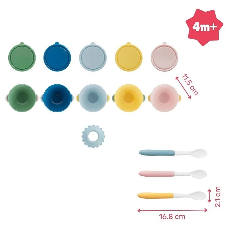 Sada je vhodná pro děti od 4 měsíců a je dostupná v různých pastelových barvách, které zpříjemní každé jídlo vašeho dítěte.