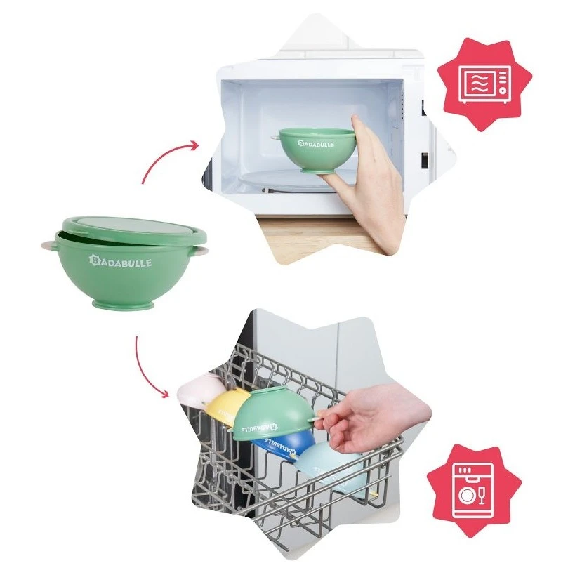 Praktická sada dětského nádobí Badabulle Sada 5ks misek s víčky, 3 lžičkami a přísavkou je ideálním řešením pro pohodlné a bezpečné krmení vašeho dítěte. Tato sada obsahuje pět misek s víčky o objemu 300 ml, tři ergonomicky tvarované lžičky a jednu protiskluzovou přísavku, která zajišťuje stabilitu misek během jídla.Misky jsou vyrobeny z kvalitního polypropylenu, který je bez obsahu ftalátů, BPA a PVC, což zaručuje zdravotní nezávadnost pro vaše dítě. Díky stohovatelnému designu misek ušetříte místo při skladování. Misky jsou vhodné pro použití v mikrovlnné troubě (bez přísavky a víček) a lze je mýt v myčce na nádobí, což usnadňuje jejich údržbu