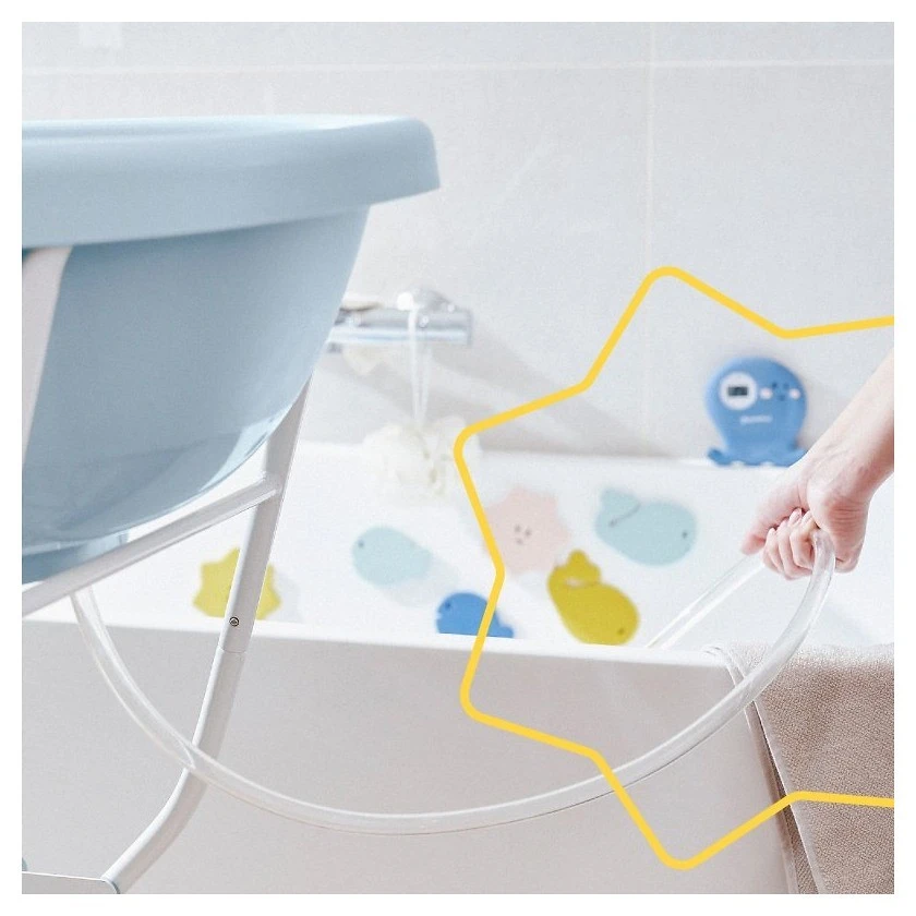 Pro maximální pohodlí při koupání vašeho dítěte doporučujeme kombinovat výpusť s vaničkou Badabulle Whale a případně i se stojanem, který umožňuje koupání ve vyšší poloze, čímž šetří vaše záda. Stojan je skládací, snadno se skladuje a disponuje stabilní konstrukcí s protiskluzovými nožičkami. Jeho nosnost je až 15 kg, což zajišťuje bezpečné a pohodlné koupání pro vaše dítě.