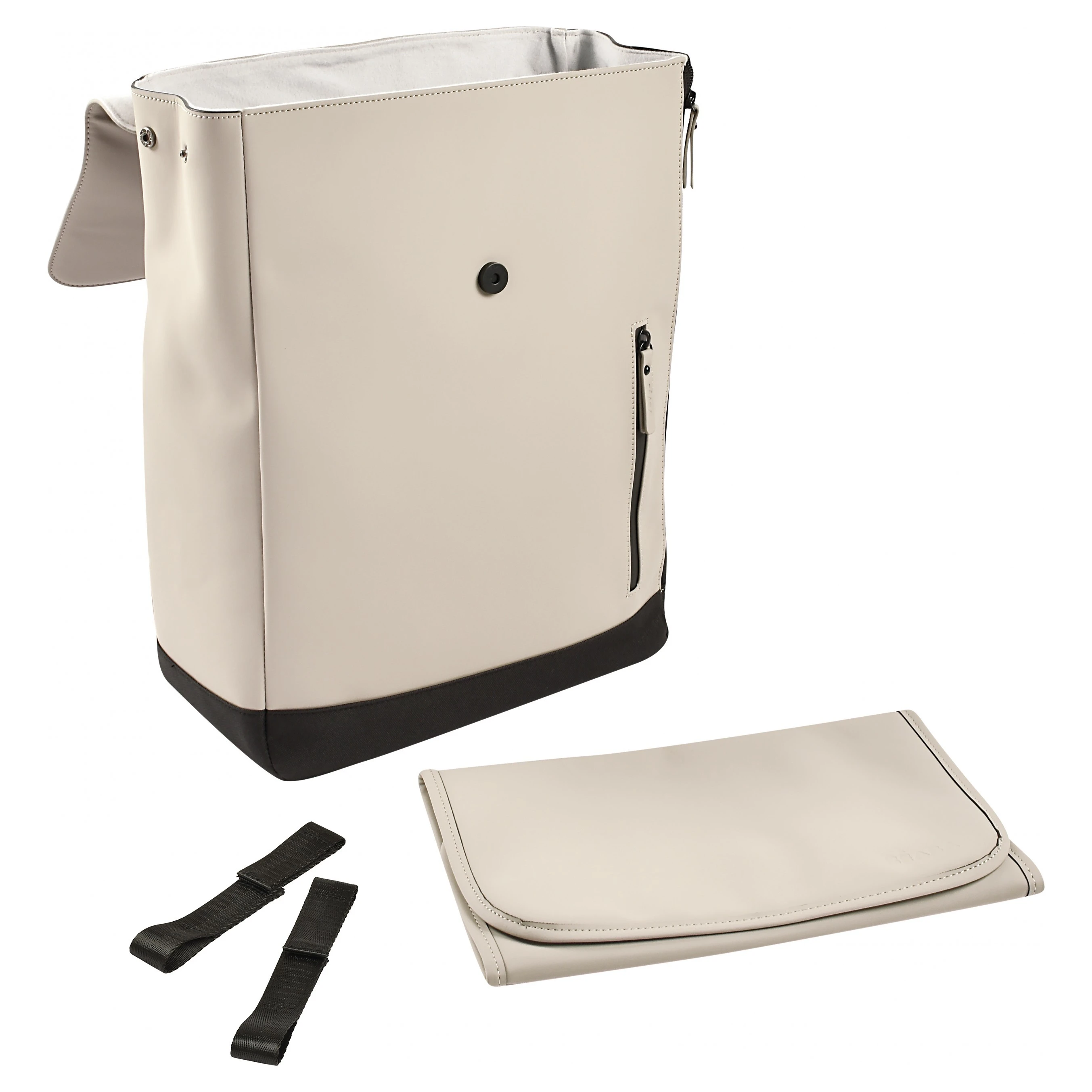 Vnější materiál batohu je voděodolný, což usnadňuje údržbu. Rozměry batohu jsou 43 x 34 x 15 cm s objemem 19 litrů. Součástí balení je přebalovací podložka a úchyty pro zavěšení na kočárek.