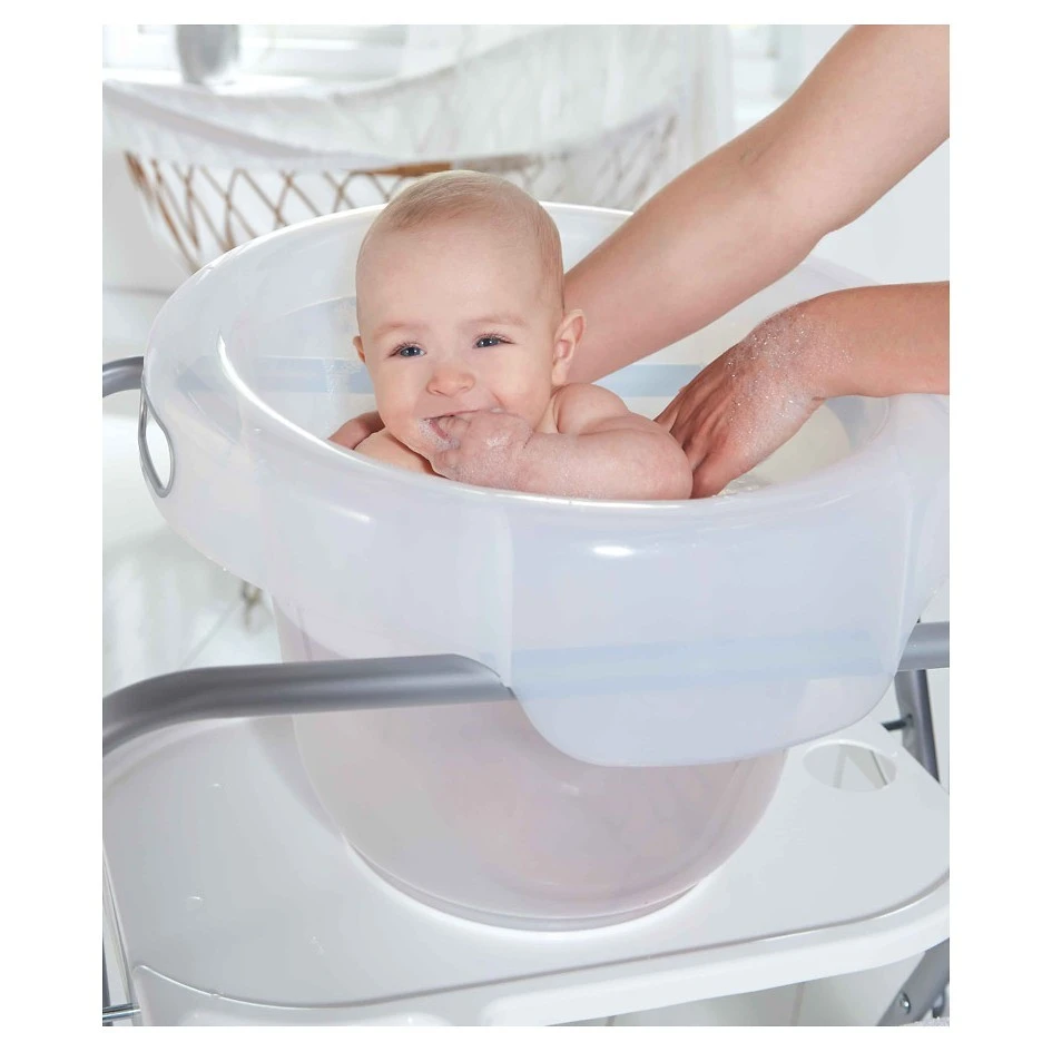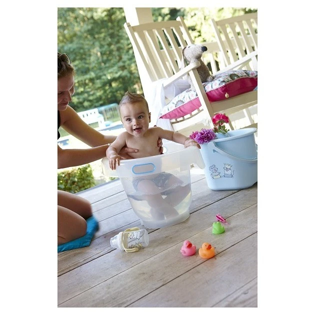 Koupací kyblíky mohou některé děti vysloveně preferovat a to právě proto, že poloha, ve které v něm jsou, velmi napodobuje polohu v děloze. Jsou vhodné od narození do cca 8 měsíců.Kromě pohodlí miminka a jeho spokojenosti je skvělé také to, že šetříte vodu. Kyblík má široký lem a spolu s kyblíkem si můžete dokoupit také kovový univerzální stojan a šetřit svá záda.