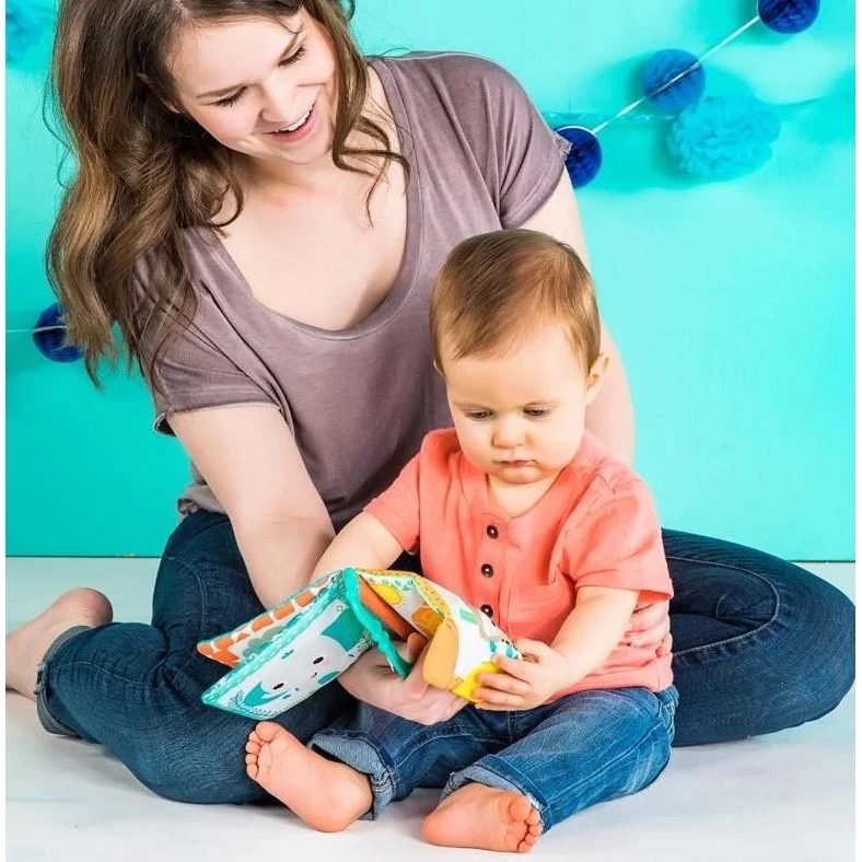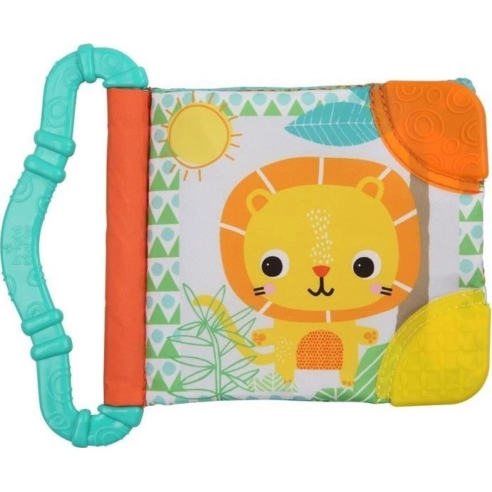 Bright Starts kousátko / knížka lev je ideální hračkou pro nejmenší děti, která kombinuje zábavu s praktickými funkcemi pro podporu jejich vývoje.Tato měkká textilní knížka je navržena tak, aby stimulovala smysly dítěte a zároveň poskytovala úlevu při prořezávání zoubků. Barevné stránky s různými vzory a obrázky zvířátek přitahují pozornost a podporují vizuální vnímání. Šustivé materiály na stránkách lákají k prozkoumávání a rozvíjejí hmatové schopnosti.