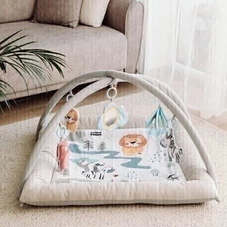 Dodatečná výplň na okrajích zajistí, že se nejmenší miminko nepřekulí z podložky pryč. Pro větší děti bude zase překážkou, kterou mohou zdolávat. Hračky jsou odnímatelné a děti je mohou zkoumat i samostatně.