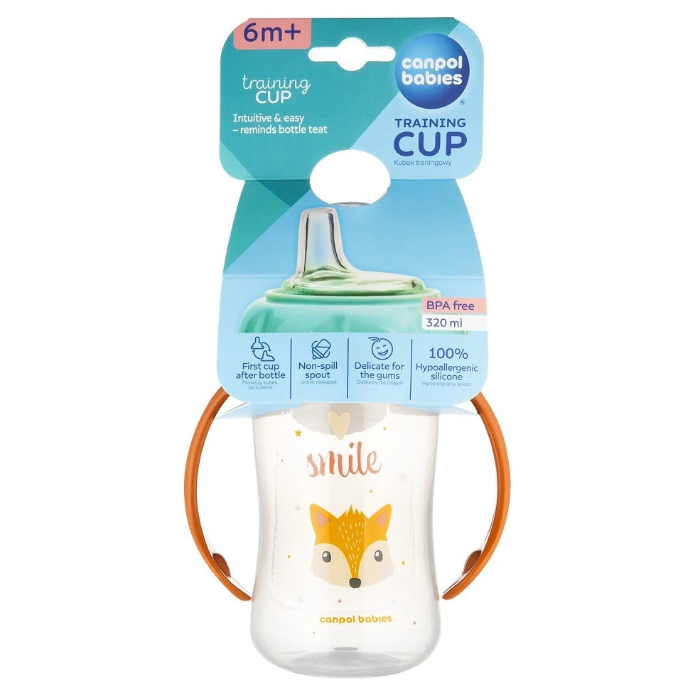 Tréninkový hrneček Canpol babies Cute Animals o objemu 320 ml je ideální volbou pro děti od 6 měsíců, které se učí samostatně pít. Díky měkkému silikonovému pítku je přechod z lahve na hrneček šetrný k citlivým dětským dásním.Hrneček je vybaven netekoucím pítkem, které zabraňuje rozlití tekutiny, i když se dítě nakloní nebo hrneček upustí. Měkké pítko je vyrobeno z bezpečného silikonu, který je šetrný k citlivým dásním dítěte. Je navrženo tak, aby bylo pohodlné a šetrné i během růstu zoubků.