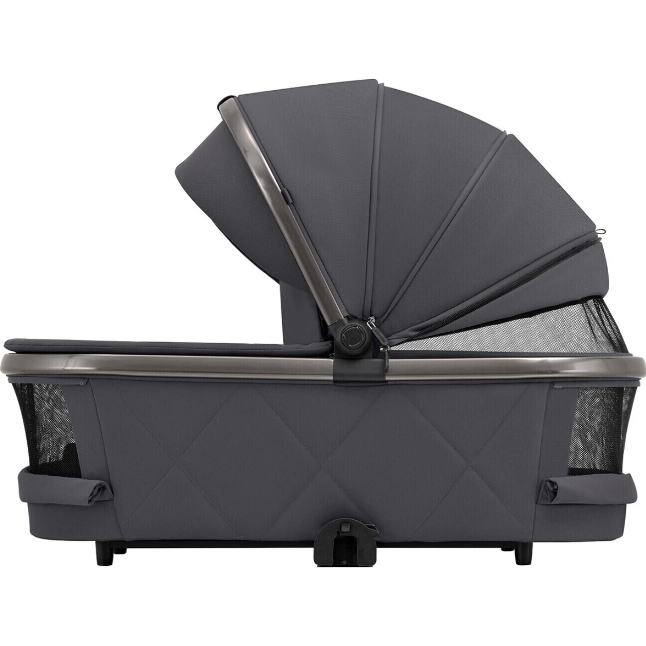 Rám je vyroben z lehkého, ale velmi pevného hliníku s kartáčovanou úpravou, která dodává elegantní a moderní vzhled. LED odvětlení na kočárku zajistí vyšší bezpečnost během procházky v horších světelných podmínkách. Má 3 režimy osvětlení.