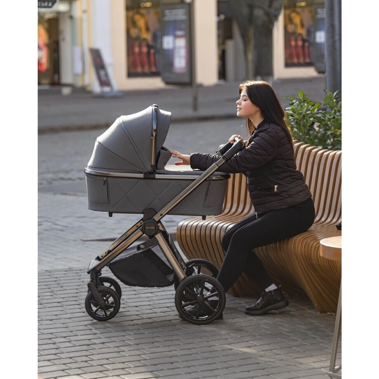 Součástí kočárku je univerzální moskytiéra a pláštěnka. Adaptéry umožňují instalovat korbu do vyšší polohy.