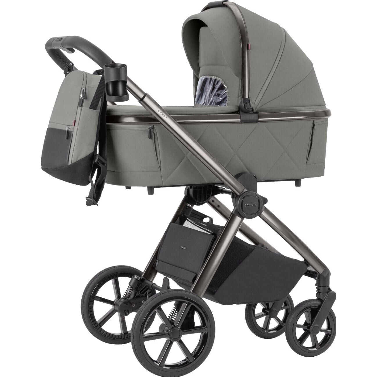 Součástí je také stylový batoh s nástavci pro připevnění na rukojeť. Do něj uložíte vše, co pro dítko potřebujete. má jednu velkou přihrádku a několik kapes uvnitř. Na vnější straně je ještě kapsa na drobnosti. Oceníte i kvalitní držák na nápoje, který poslouží jak pro dětskou lahev, tak pro vaši kávu.