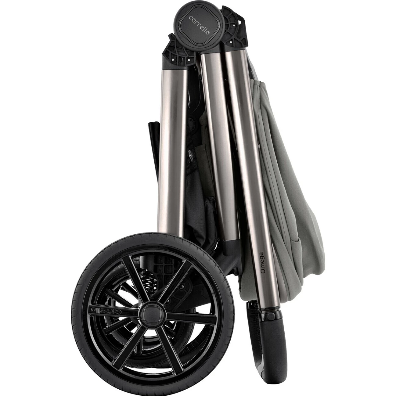 Přední kola kočárku jsou otočná s možností aretace. Všechny kola jsou rychloupínací, takže je během vteřiny sundáte, pokud potřebujete kočárek ještě skladnější.