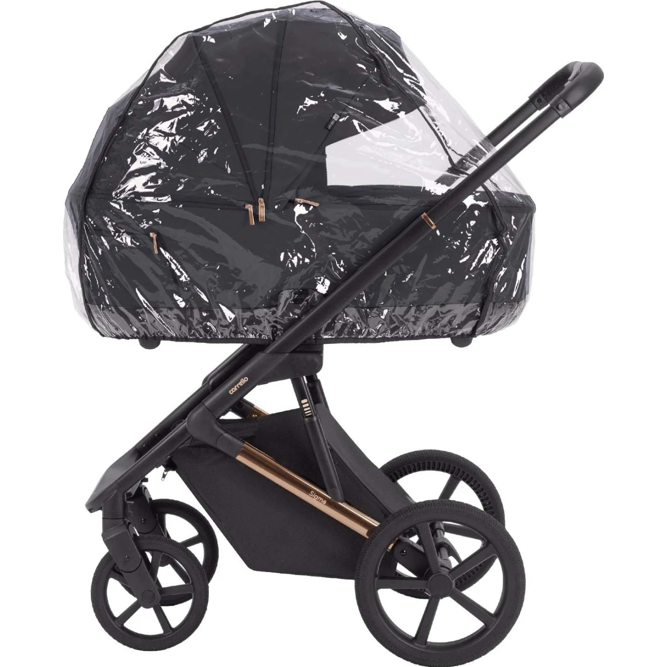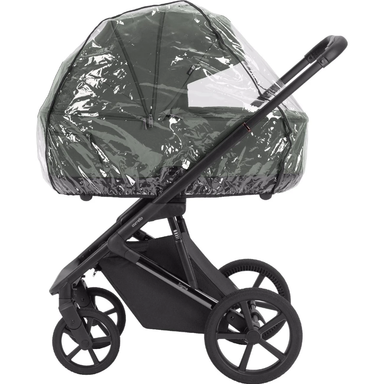 Pod kočárkem je instalovaný prostorný nákupní košík, který je plně uzavíratelný. Součástí kočárku je také přebalovací batoh, univerzální pláštěnka, moskytiéra na korbičku, nánožník na korbičku a nánožník na sportovní sedačku.