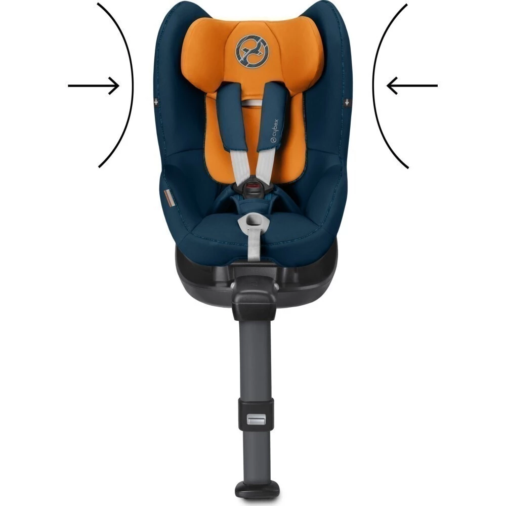 Ať už v pozici po či proti směru jízdy, integrovaná lineární ochrana při bočním nárazu autosedačky CYBEX Sirona M2 i-Size (L.S.P. Systém) zvyšuje úroveň bezpečí v případě nárazu z boku. L.S.P. systém lze vyklopit a v kombinaci s protektory hlavy a ramen snižuje sílu bočního nárazu.