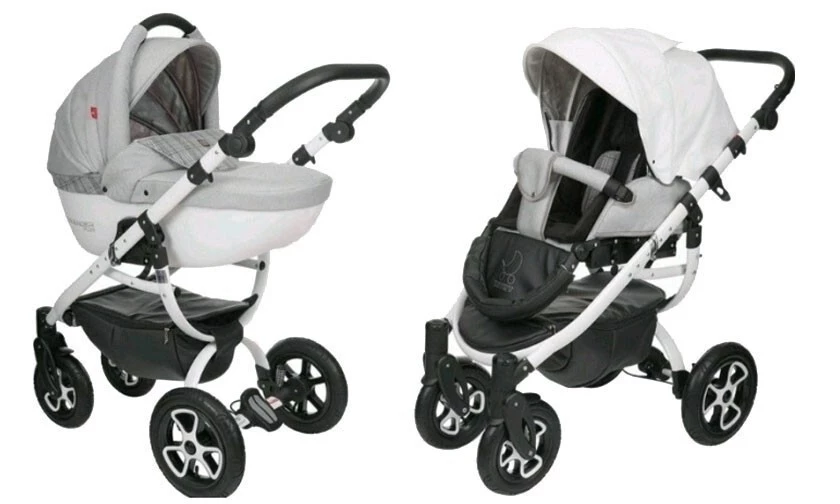 Cena obsahuje: konstrukci kočárku, hlubokou korbičku s pláštěnkou a moskytiérou, sportovní sedačku s nánožníkem a tašku na rukojeť.