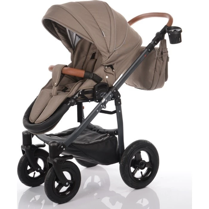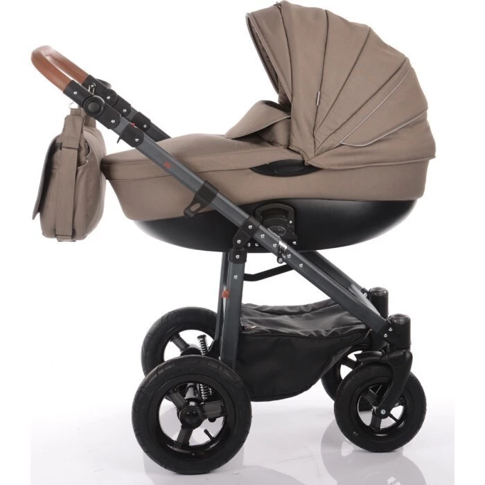 Cena obsahuje: konstrukci kočárku, hlubokou korbičku s pláštěnkou a moskytiérou, sportovní sedačku s nánožníkem, tašku na rukojeť a rukávník na zimu v barvě kočárku.
