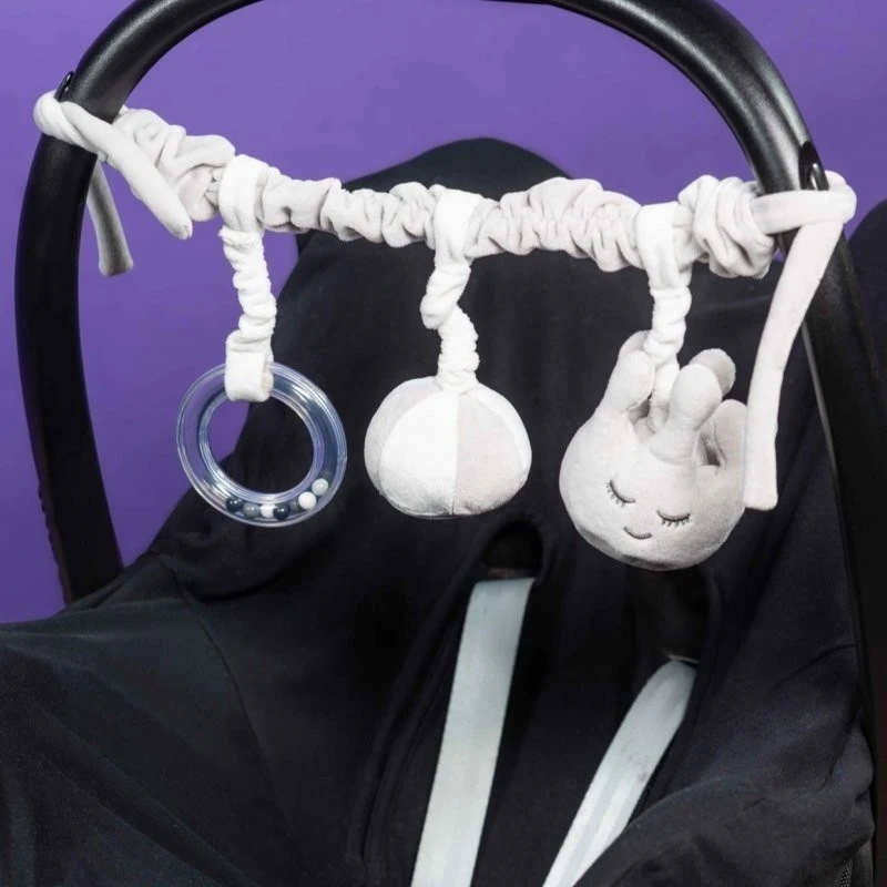 * Zavěšené plastové chrastítko, které vydává zvuky a stimuluje sluchové vnímání.