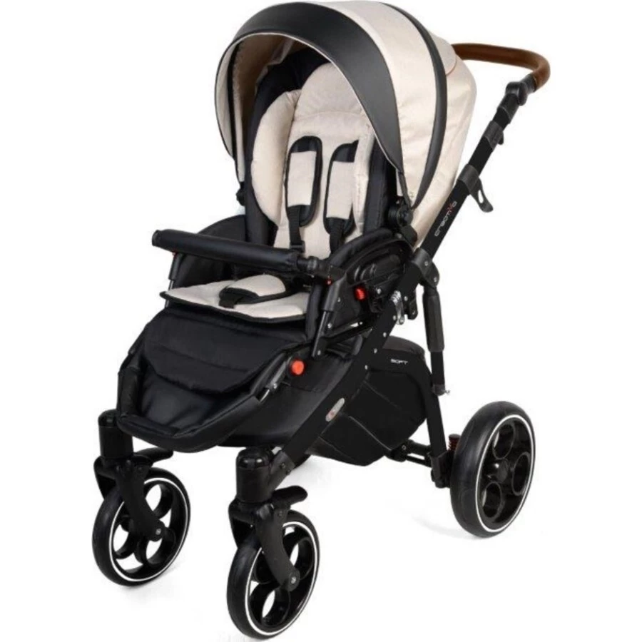 Zažijete s ním skvělou jízdu. Přední kolečka jsou otočná a mají inovativní systém aretace. Všechna kolečka jsou pěnová. Nepotřebují díky tomu žádnou údržbu. Kočárek má konstrukci Soft (Smart), která je celoodpružená se skrytými pružinami. Pružiny můžete navíc mírně nastavit a vybrat si tuhost odpružení, která vám bude vyhovovat.