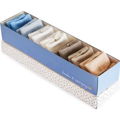 Dárková krabička se 7 páry ponožek Doudou je ideální dáreček pro novorozence. Ponožtičky jsou vhodné pro děti od narození do 6 měsíců.Ponožky jsou měkké a pohodlné - dětičky z nich nemají otlaky kolem nožiček a zároveň na nožičce krásně drží.