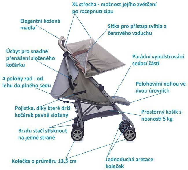 Většinou si golfky pořizujeme až pro starší děti, okolo roku a půl, pokud ale potřebujete golfky dříve, tyto jsou skvělým kandidátem. Na rozdíl od většiny golfek mají tyto polohování až do lehu a mají možnost nasazení vajíčka od značek Maxi Cosi, Cybex a BeSafe, stačí si dokoupit adaptér.