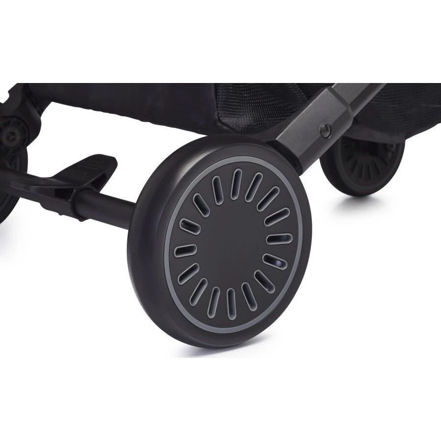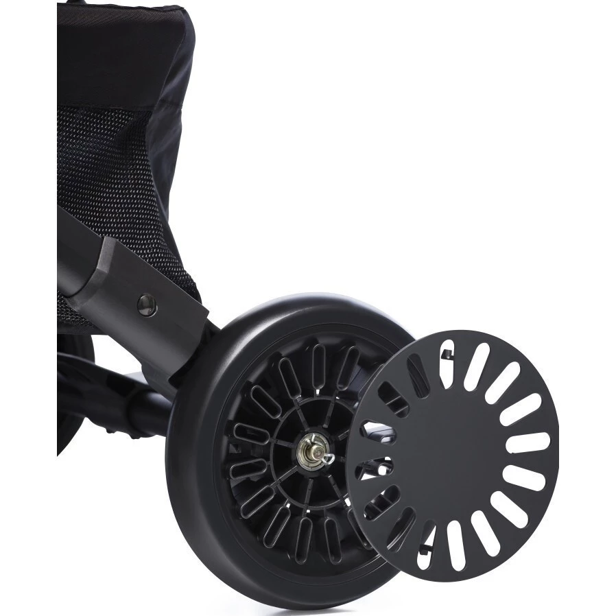 Kočárek je vybaven 4 kolečky, které jsou odpružené a poskytují tak měkkou a pohodlnou jízdu s kočárkem. Zadní kolečka jsou vybavena nášlapnou brzdou.