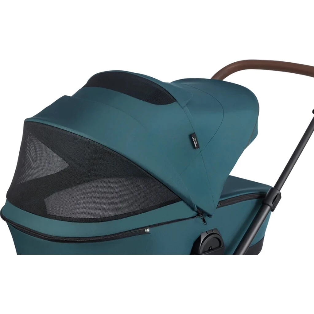Harvey 5 Premium je doladěný opravdu do posledního detailu. Váží přitom pouze 11 kg a je velmi skladný. Hluboká korbička je měkce polstrovaná, má velkou sluneční stříšku s kšiltem a nechybí ani velké větrací okénko se síťkou, které poskytne dostatečnou cirkulaci vzduchu. Vnitřek je z heboučké organické bavlny, která je jemná k dětské pokožce. Má navíc antirefluxní systém, díky kterému můžete nastavit dno do vyvýšené polohy.