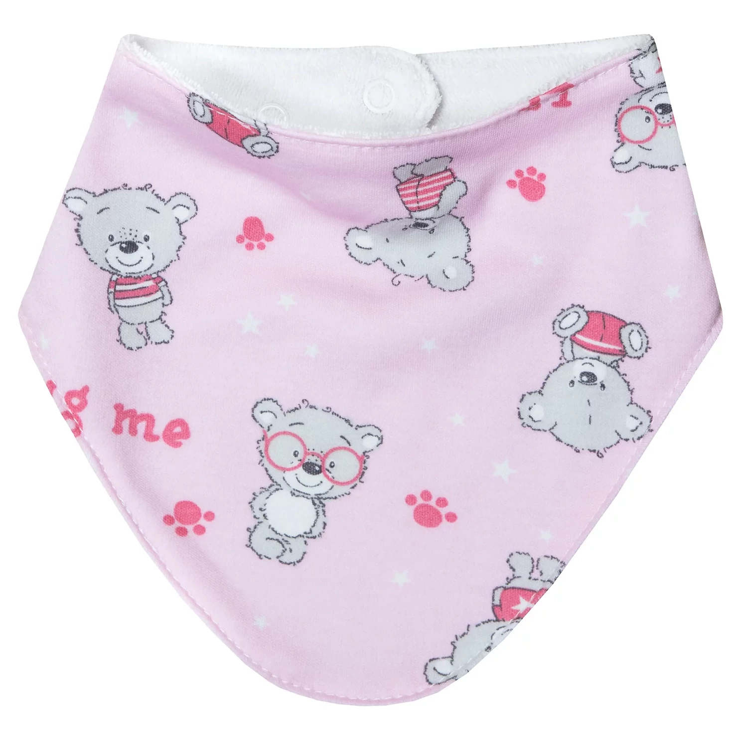 Slintáček je ideálním pomocníkem během prořezávání zoubků. Děti mnohdy nadměrně slintají a díky slintáčku bude jejich oblečení chráněno před vlhkem.Je vyrobený z dvojitého materiálu, který je perfektně savý. Zapíná se na dva druky, díky kterým si můžete upravit velikost.