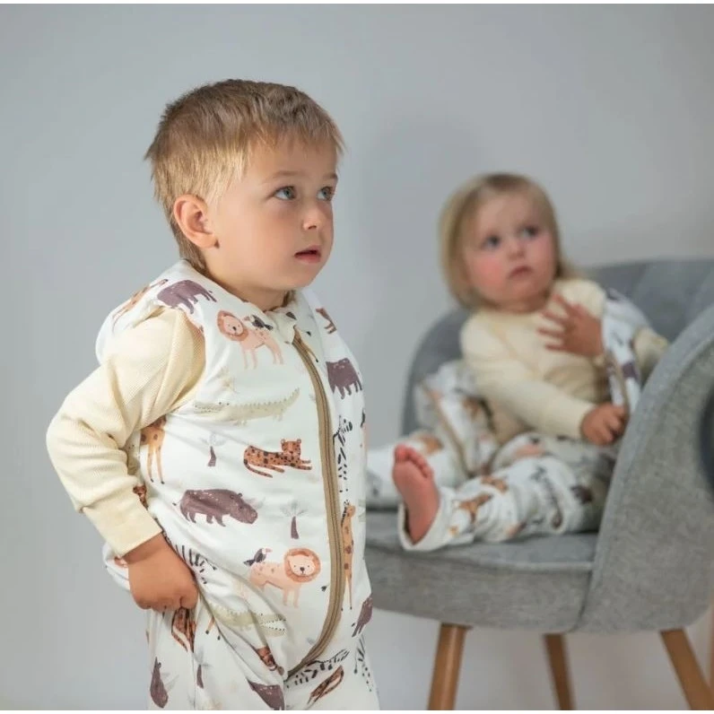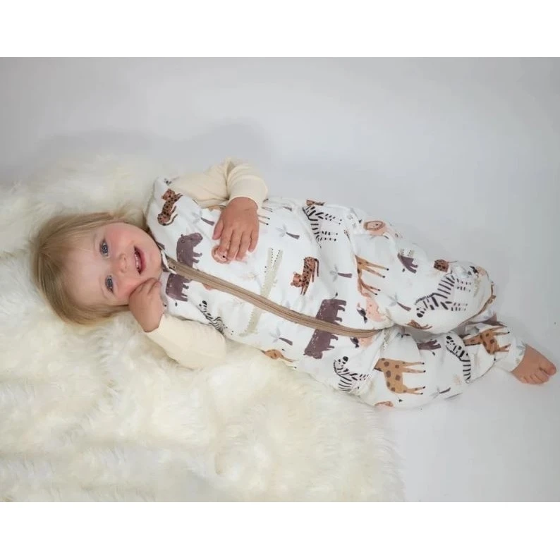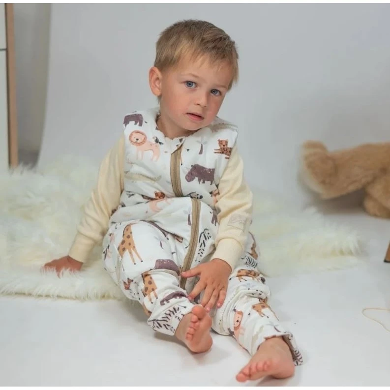 Spací pytel s nohavicemi ESITO Safari park je ideálním řešením pro rodiče, kteří chtějí svým dětem zajistit pohodlný a bezpečný spánek bez rizika odkopání. Tento spací pytel je navržen pro děti ve věku od 9 do 36 měsíců a díky svému promyšlenému designu poskytuje maximální komfort a volnost pohybu.Vyroben z kvalitní směsi 95 % bavlny a 5 % elastanu, spací pytel je měkký, pružný a příjemný na dotek. Materiál splňuje certifikaci Oeko-Tex Standard 100, což zaručuje jeho bezpečnost pro citlivou dětskou pokožku. Výplň tvoří 100% polyesterové antialergické silanizované duté vlákno, které zajišťuje optimální tepelnou izolaci.