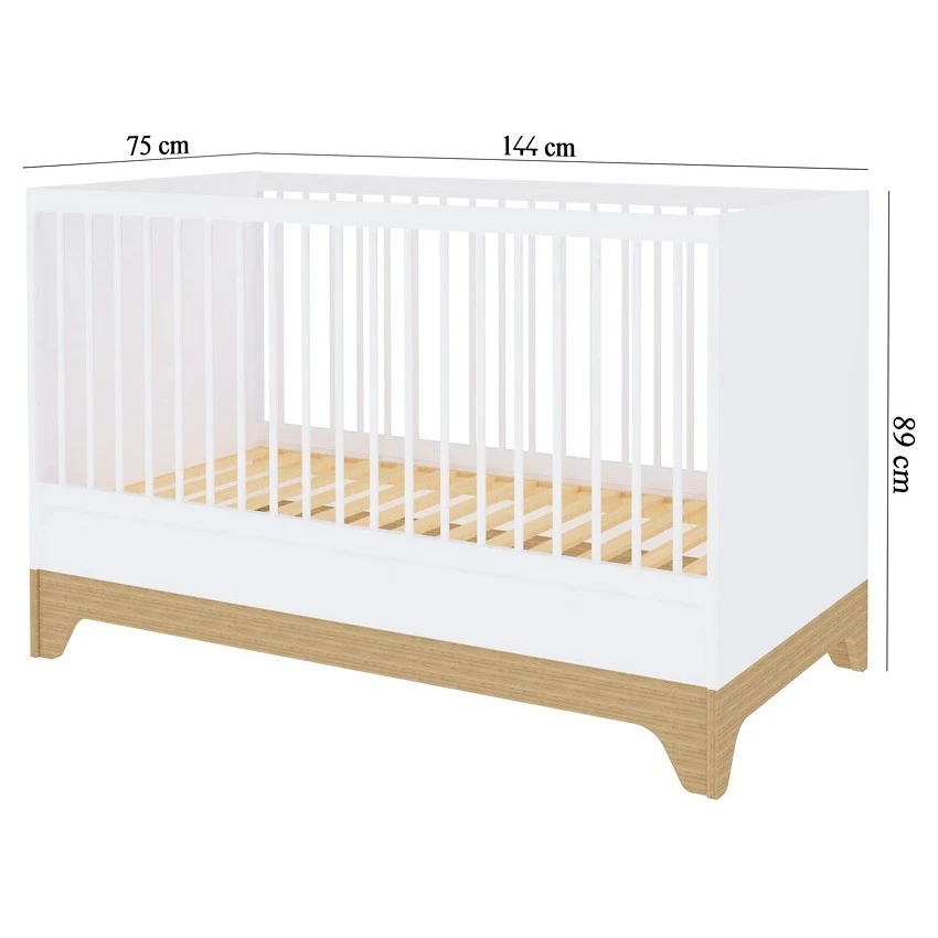 Celkové rozměry postýlky jsou 144 x 75 x 89cm (šířka x hloubka x výška). Matrace pro postýlku (70 x 140 cm) není součástí balení a je nutné ji objednat samostatně.
