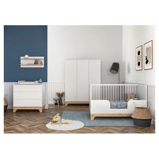 Faktum Variabilní postýlka Lumina je multifunkční kus nábytku navržený tak, aby rostl spolu s vaším dítětem a přizpůsoboval se jeho měnícím se potřebám. Tato kombinovaná postýlka má dvě zábrany proti pádu a dítěti poslouží do 5-6 let.Postýlka je vyrobena z kvalitní laminované dřevotřískové desky v kombinaci s masivním dubem v provedení sonoma, což zajišťuje její pevnost a dlouhou životnost. Nosnost postýlky je 25kg a válendy 40kg.