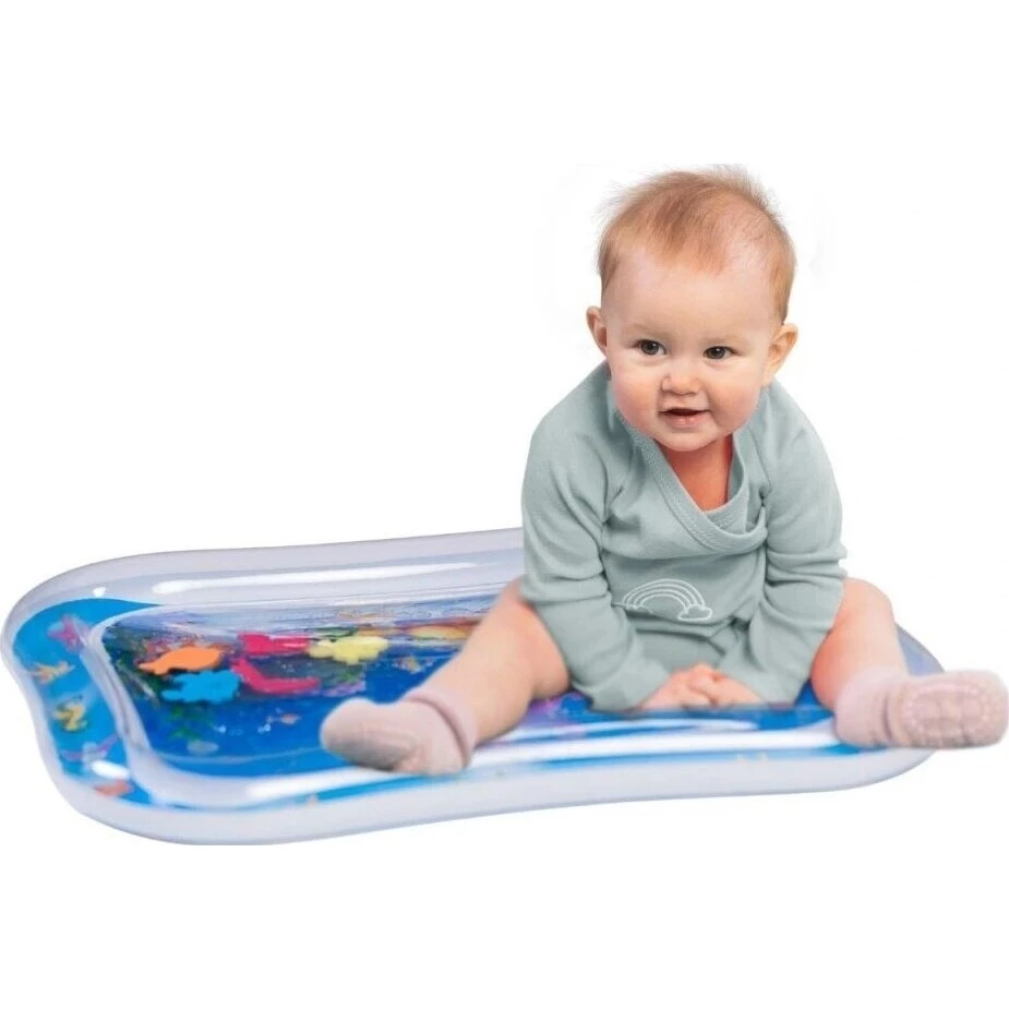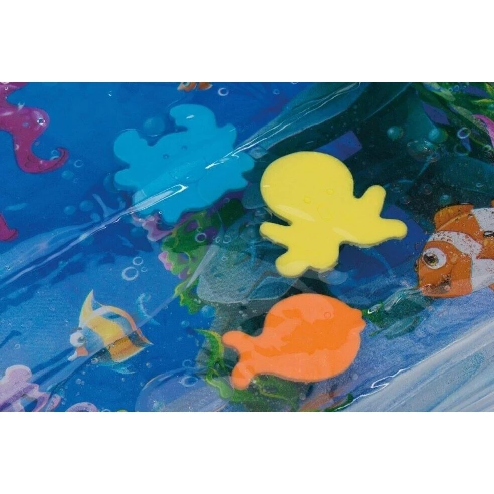 Poskytněte těm nejmenším neotřelou zábavu na bříšku i v sedě, při které mohou pozorovat mořský svět. Díky vodní výplni je možné hračkami uvnitř pohybovat a dítko tak skvěle rozvíjí hmatové i smyslové dovednosti.Podložka má nafukovací okraj a je krásně měkká. Je vhodná pro děti již od narození. Díky materiálu se snadno čistí. Po hraní je možné podložku snadno složit a uskladnit.