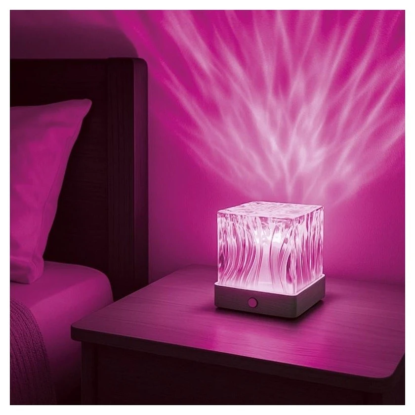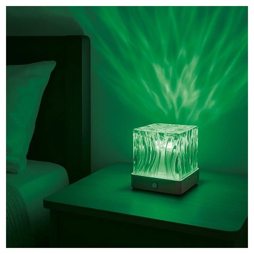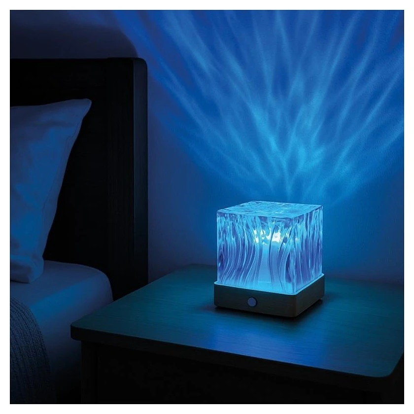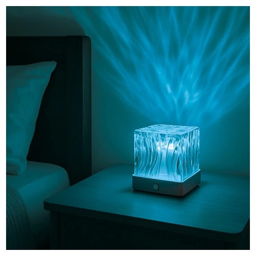 Jemný a elegantní projektor noční oblohy Forever s motivem polární záře. Vnáší do pokoje pohyblivé barevné světlo. Nabízí 16 barev a dynamické přechodové režimy.Vzhled lampy připomíná kostku ledu a hodí se skvěle jako dekorace do každého interiéru.