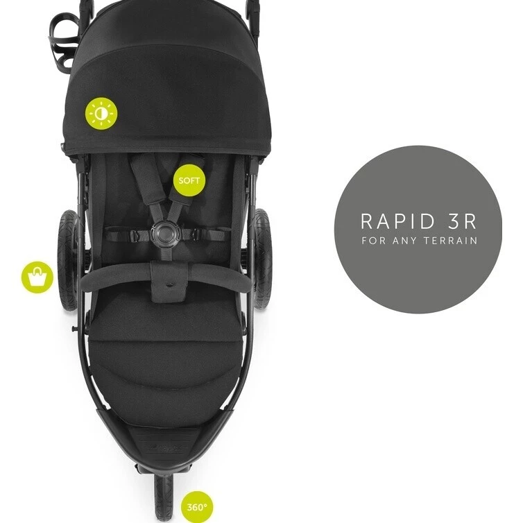 Tříkolový kočárek Hauck Rapid 3R zvládne hravě i jízdu terénem. Zazáří ale i ve městě. Jeho velká kola jsou z gumového materiálu, který skvěle tlumí otřesy a vy se nemusíte bát, že kolečko píchnete. Přední kolo je otočné s možností aretace.Kočárek složíte velmi rychle jednou rukou a po složení je dokonale skladný. Odjišťovací poutko využijete také jako pohodlné ucho pro přenos kočárku.