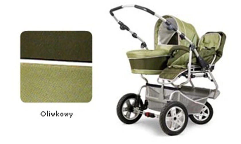 Cena obsahuje: konstrukci kočárku, 2 hluboké korbičky, 2 sportovní sedačky, 2 fusaky, 2 pláštěnky na hluboké korbičky a 2 moskytiéry.