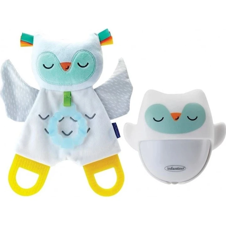 Infantino noční lampička se svítícím muchláčkem Sova je ideálním společníkem pro klidné usínání vašeho dítěte. Tato multifunkční sada kombinuje dobíjecí noční světýlko a měkkého muchláčka, kteří společně vytvářejí uklidňující atmosféru v dětském pokoji.Dobíjecí noční světýlko ve tvaru roztomilé sovy je vybaveno světelným senzorem, který zajišťuje automatické rozsvícení ve tmě a zhasnutí za světla. Světýlko lze používat přímo v elektrické zásuvce nebo po dobití vložit do pouzdra ve tvaru sovy a umístit například na noční stolek vedle postýlky. Po plném nabití poskytuje světlo až po dobu 60 hodin, přičemž je možné jej vypnout pro úsporu energie.