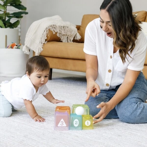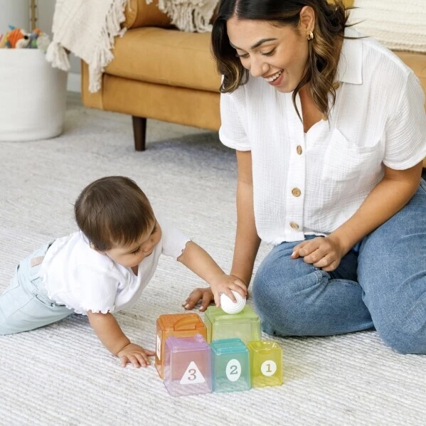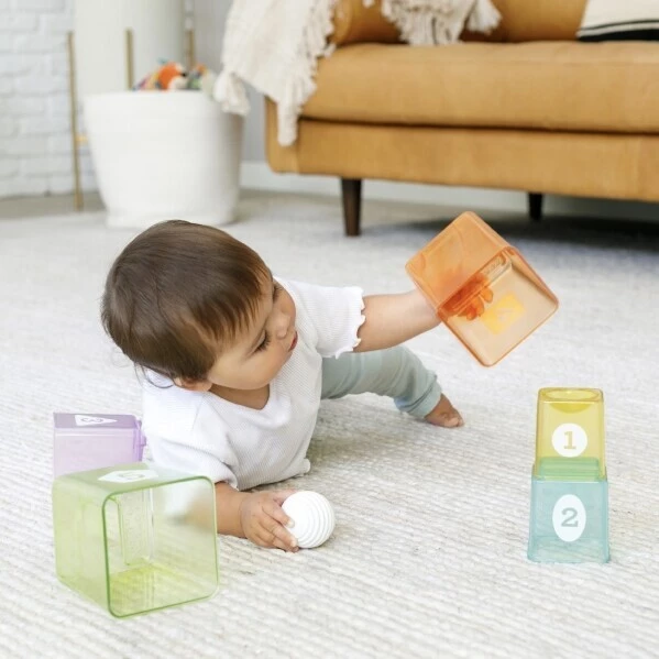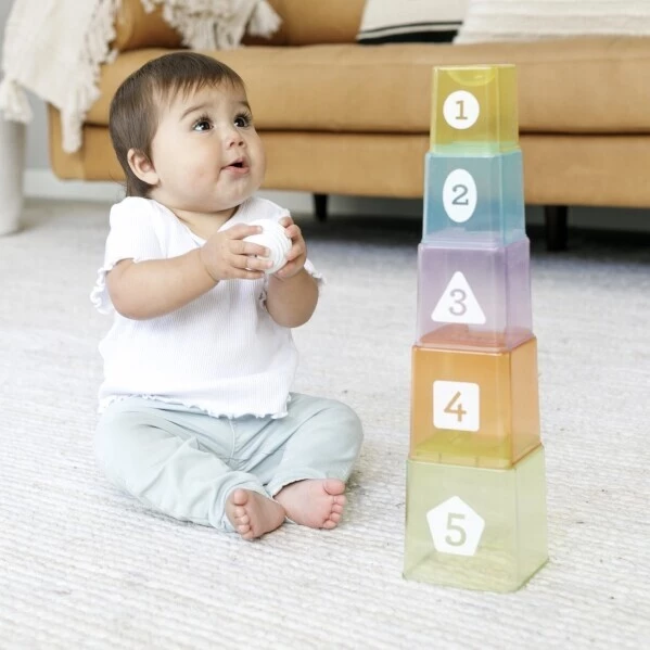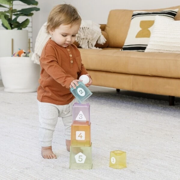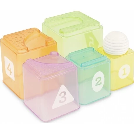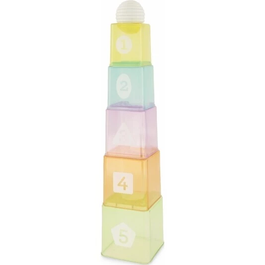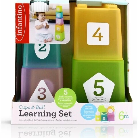 Sada stohovacích kelímků s míčkem Infantino nabízí mnohem větší zábavu, než klasické kelímky.Kelímky lze skládat na sebe, ale také vedle sebe a vytvořit z nich dráhu pro míček. Kromě toho na nich lze trénovat tvary, barvy i čísla.