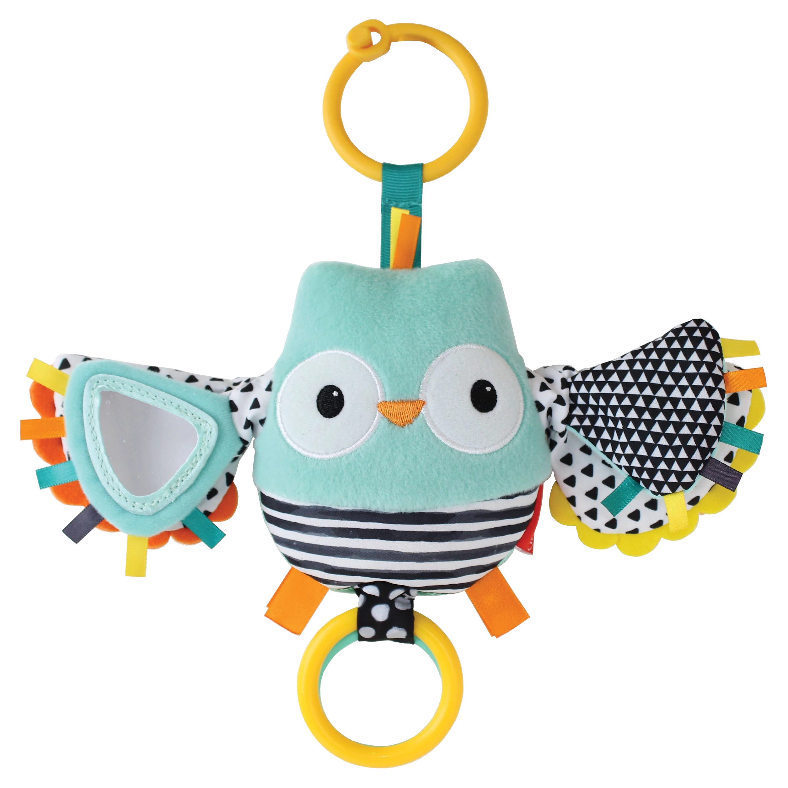 Infantino Vibrující sovička s mávajícími křídly je ideální hračkou pro nejmenší děti, která podporuje jejich smyslový a motorický vývoj. Tato roztomilá sovička je navržena tak, aby zaujala dětskou pozornost a poskytla jim zábavu na cestách i doma.Hračka je vybavena praktickým kroužkem, který umožňuje snadné připevnění na kočárek, autosedačku nebo postýlku. Po zatáhnutí za spodní kroužky začne sovička vibrovat a mávat křídly, což dítěti poskytuje vizuální i hmatový zážitek. Výrazné barvy a různorodé textury materiálů stimulují zrak a hmat dítěte, zatímco bezpečné zrcátko podporuje sebepoznání a zvídavost.