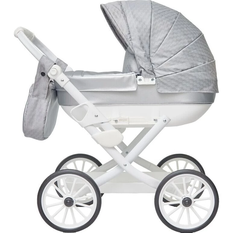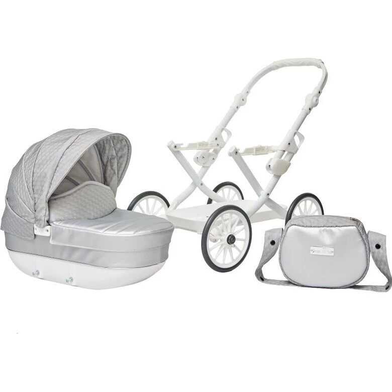 Kočárek je propracovaný do nejmenších detailů. Hlubokou korbičku je možné sundat a vybrat si směr jízdy. Vanička je obšitá krásnou koženkou. Součástí je i bílá podložka dovnitř.