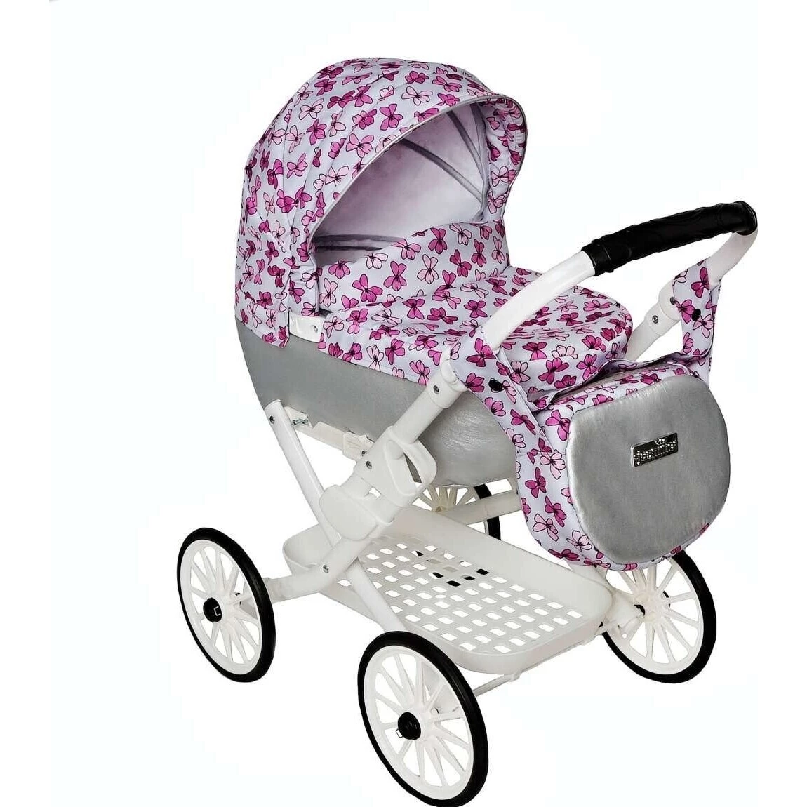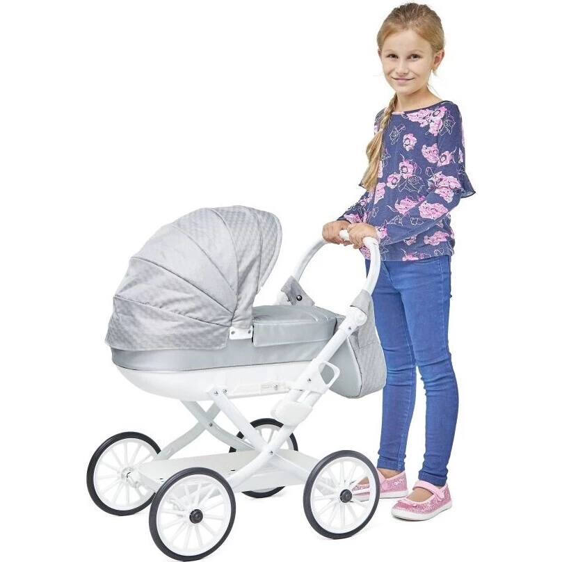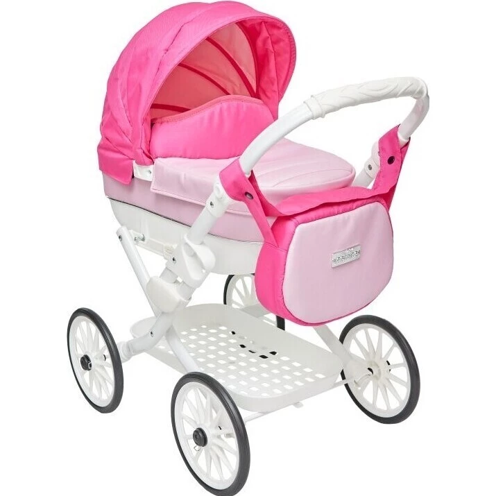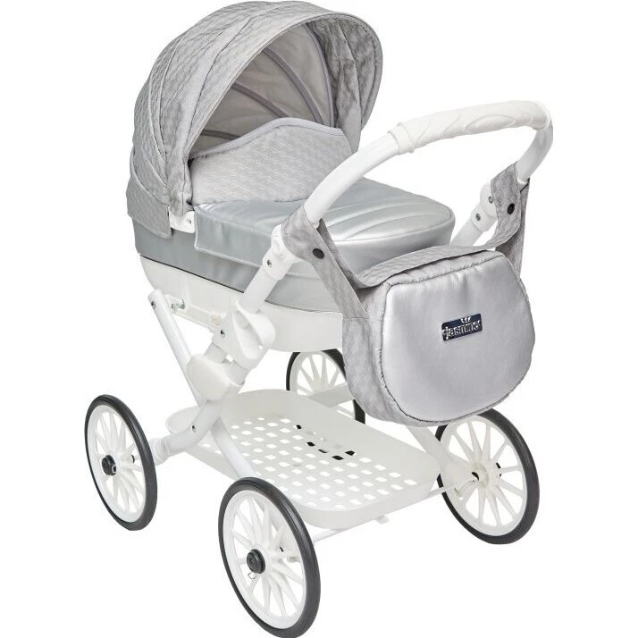Holčičky mohou svou panenku v kočárku Jasmine Kids ochránit před zimou díky nánožníku na magnetky. elegantní pěnová kolečka jsou vhodná pro všechny povrchy, ať už doma nebo venku. Součástí je i plastový nákupní košík a kabelka na drobnosti, kterou lze vozit na rukojeti kočárku, nebo jej nosit přes rameno.