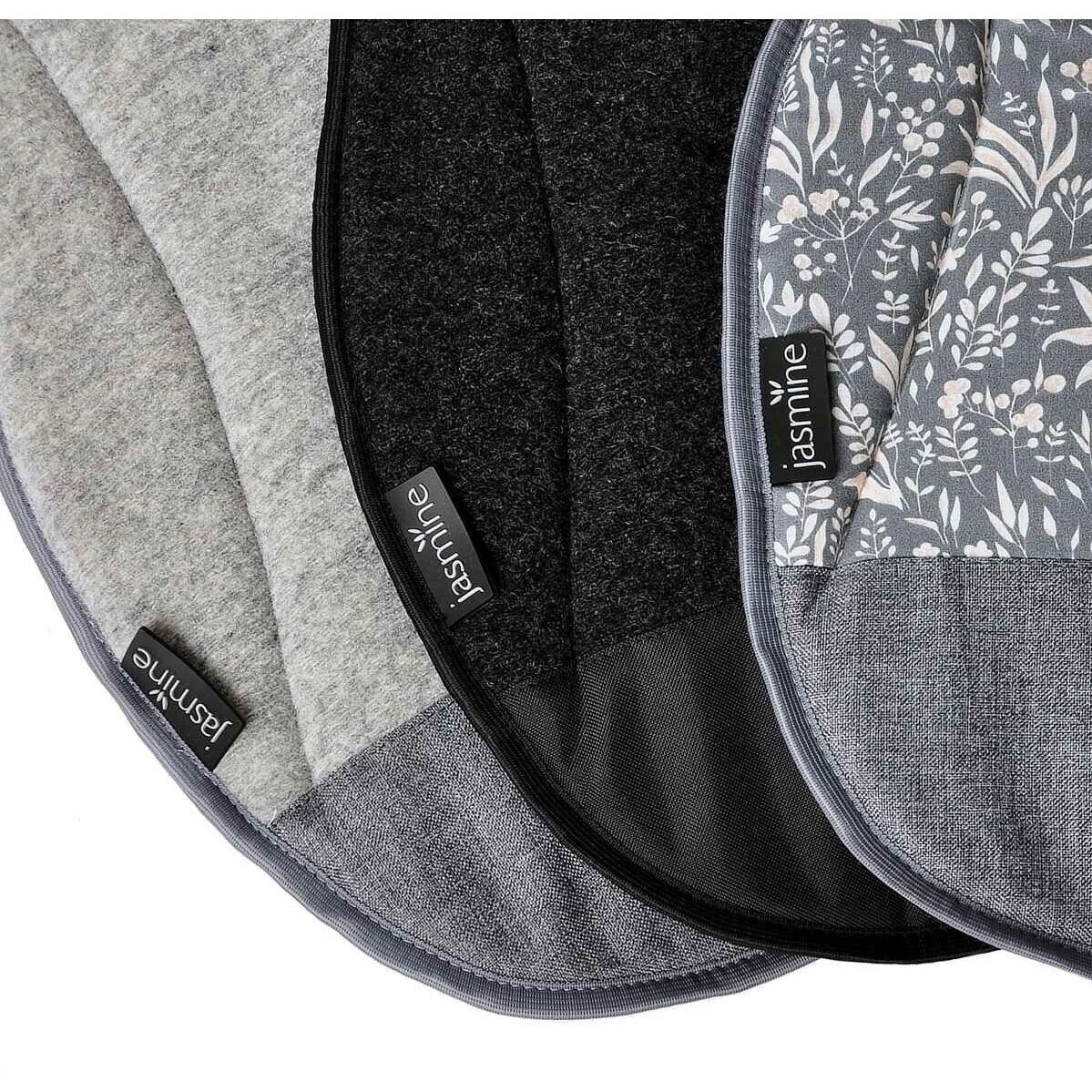 Vlněná vložka do kočárku Jasmine je oboustranná a vhodná do většiny kočárků. Skvěle padne do sporťáků i golfek se 3 i 5 bodovými pásy (není vhodná do kočárků s připojeným zádržným systémem.Ve spodní části nožiček je na vložce voděodolná tkanina, která brání zašpinění látky od botiček a snadno se čistí. Pro ještě pevnější uchycení je ve spodní části nastavitelný pásek se sponou.