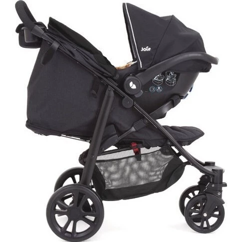 Jednoduchá čtyřkolová konstrukce je skvěle kompatibilní s autosedačkou Joie Gemm (0+), bezadaptétově.