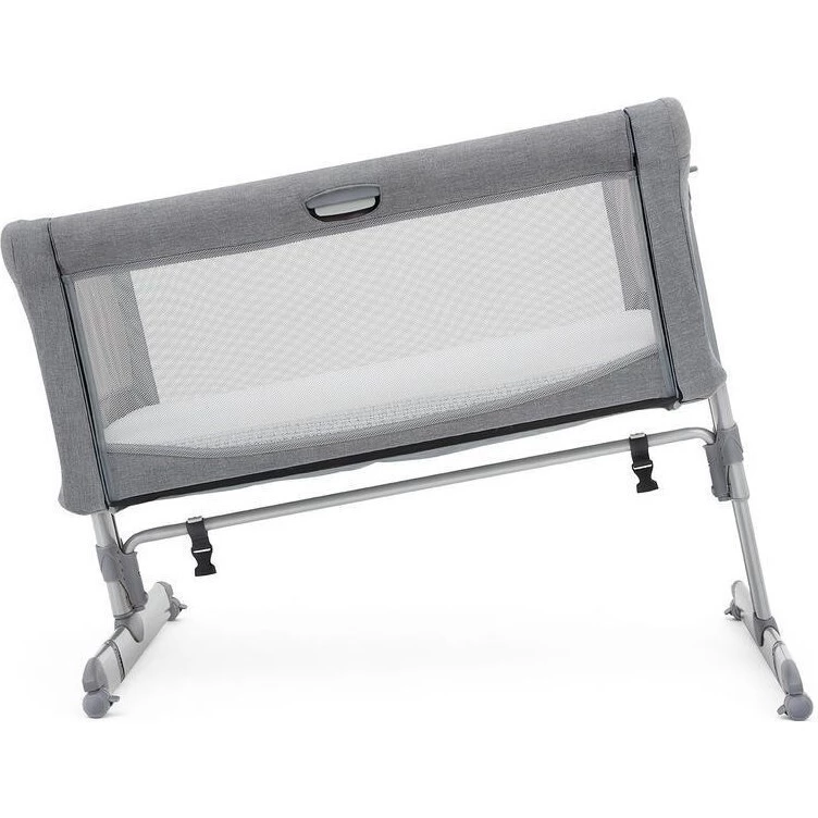 Nohy postýlky jsou zatahovací, aby bylo možné postýlku umístit hned vedle psotele, která má úložný prostor. Rám je z velmi pevného a lehkého hliníku a všechny hrany jsou pro maximální bezpečnost zaoblené.