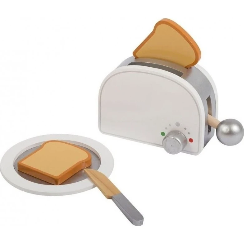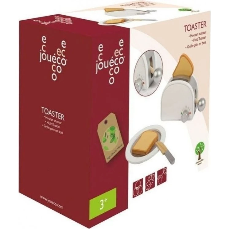 Děti milují, když si mohou hrát na něco skutečného. Dřevěný toustovač Jouéco jim umožní připravovat snídani přesně, jako jejich maminka.Sada obsahuje také 2 krajíce chleba, nůž a talíř.