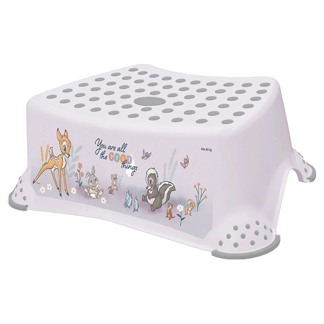 Stupínek k umyvadlu a k WC s protiskluzovou úpravou pomáhá dětem bezpečně si osvojovat základní hygienické návyky.• Protiskluzová ochrana podnoží slouží ke stabilitě stoličky